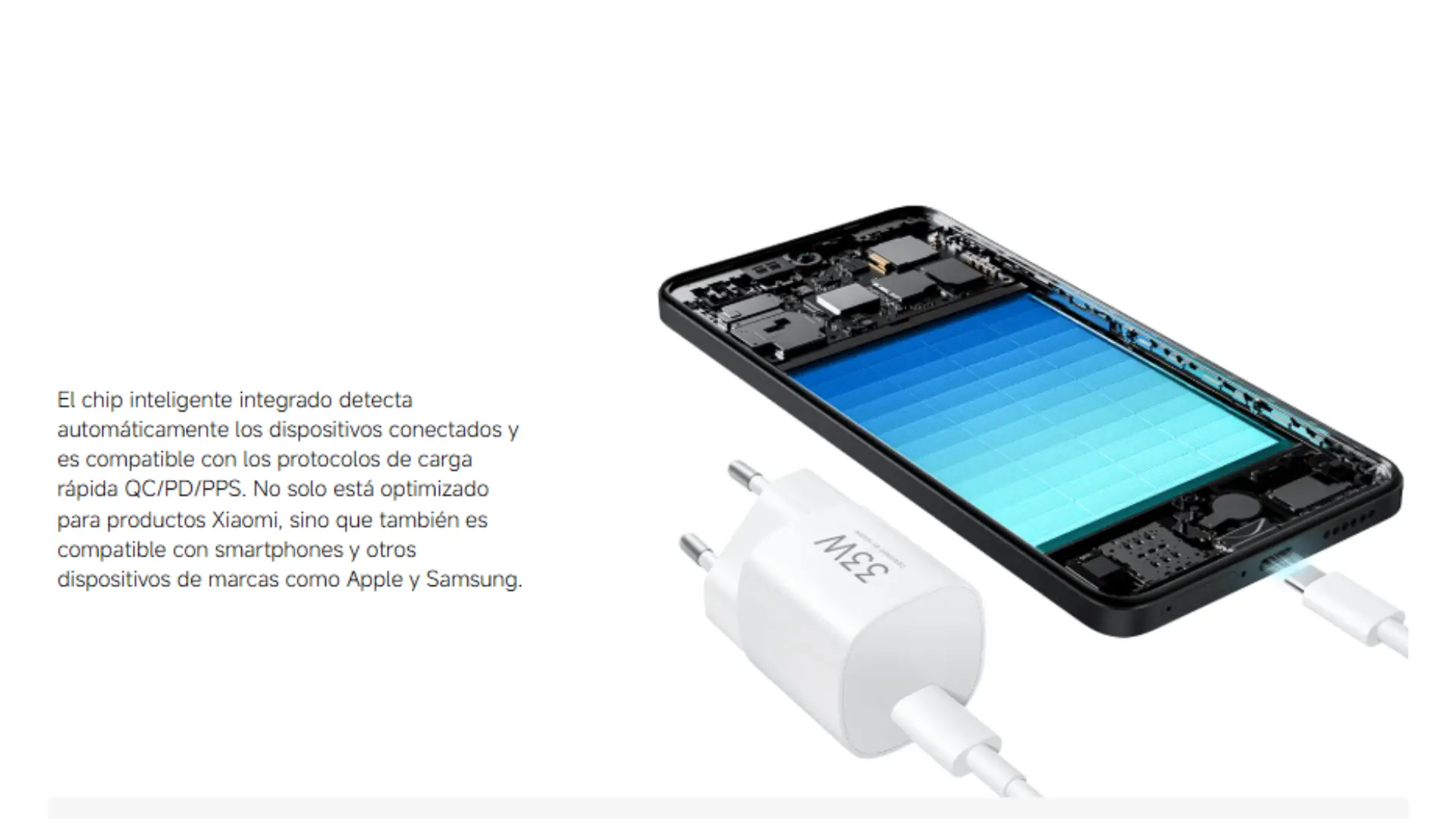 El Xiaomi 33W Nano Power Adapter (USB-C) es un cargador compacto y potente diseñado para ofrecer carga rápida y segura en cualquier momento. Con su tamaño reducido y diseño minimalista, se convierte en el aliado perfecto para viajes, oficina o uso diario en casa