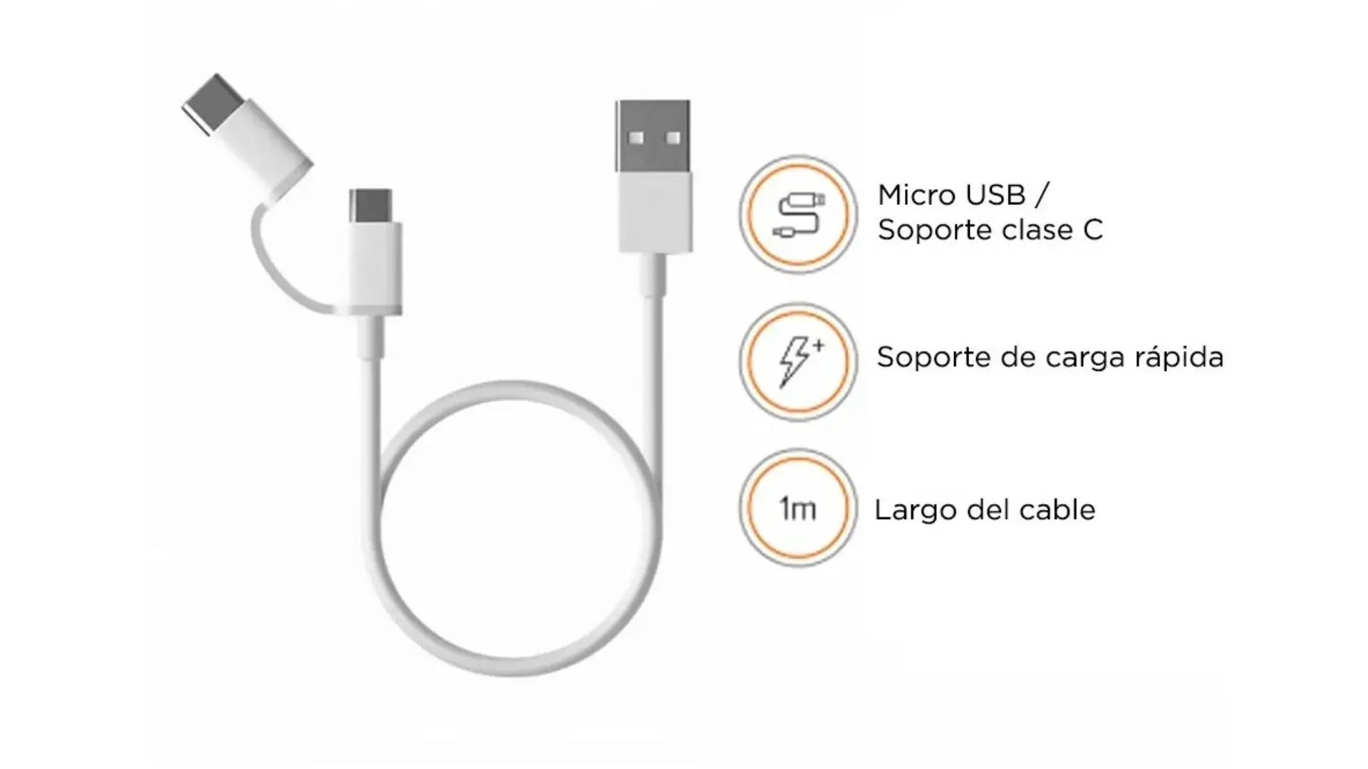 El Xiaomi Mi 2-In-1 USB Cable de 100cmcombina practicidad y versatilidad en un solo accesorio. Diseñado para ofrecer carga rápida y transferencia de datos estable, integra conectores Type-C y Micro USBen un mismo cable, adaptándose a múltiples dispositivos sin necesidad de llevar varios accesorios. Su longitud de 1 metrobrinda comodidad tanto en casa como en la oficina, mientras que su construcción resistente garantiza durabilidad y seguridad en cada uso.