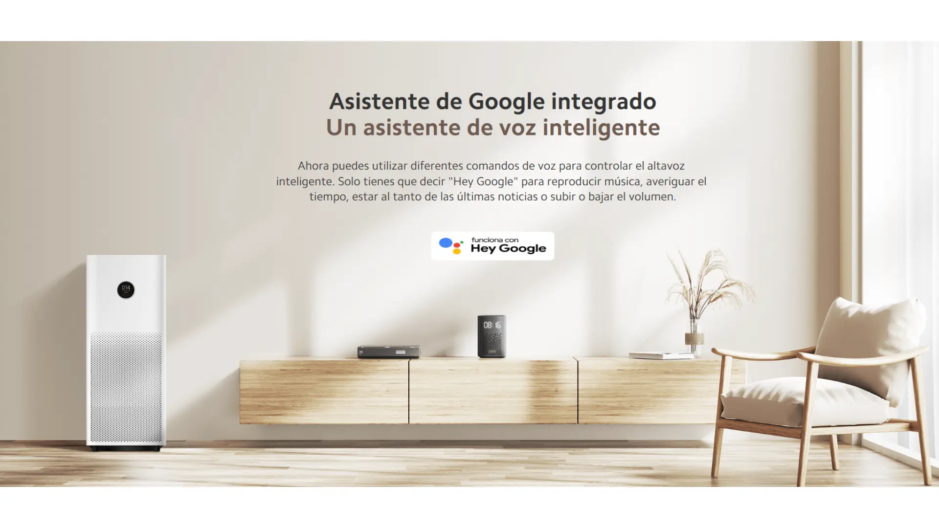 Asistente de Google integrado| Control de infrarrojos| Campo de sonido equilibrado| Reproducción estéreo| Centro de control de hogar inteligente| Pantalla de reloj LED