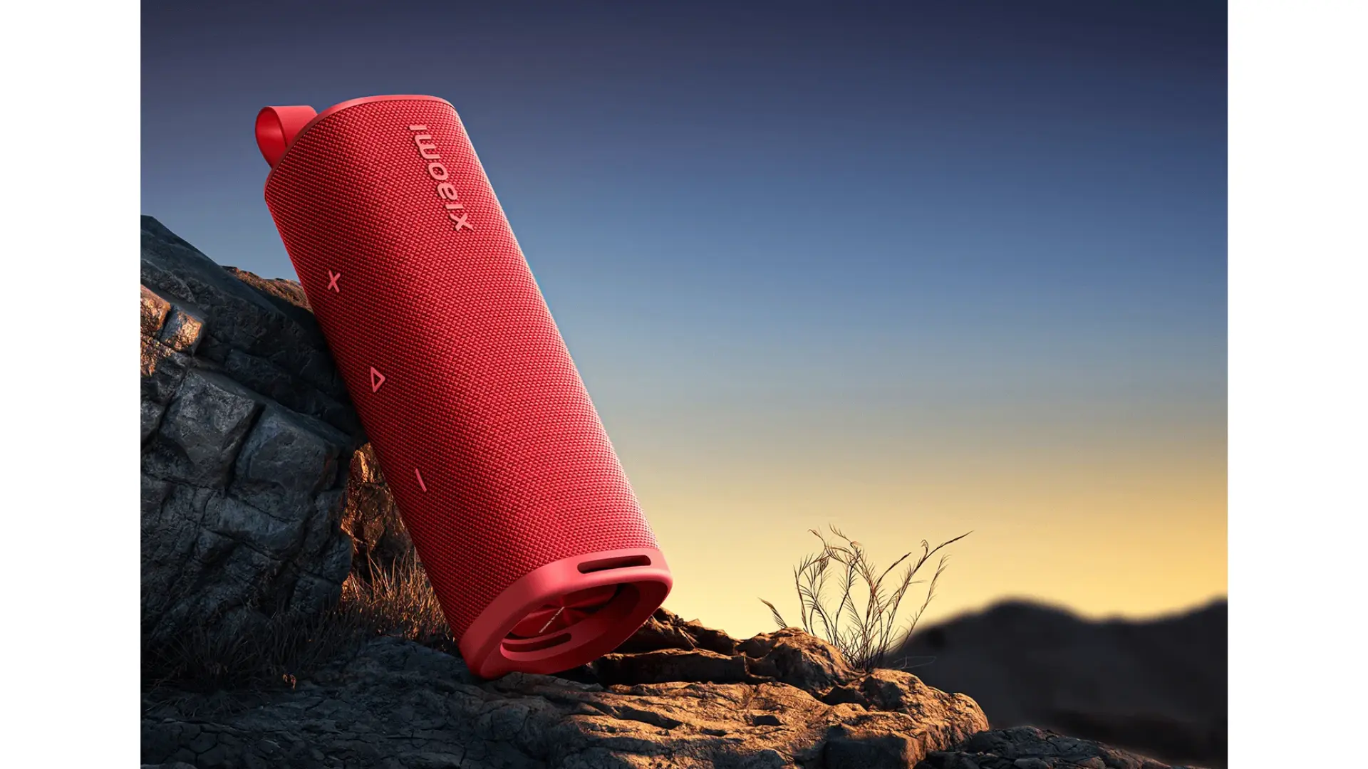 Altavoz portátil Xiaomi Sound Outdoor en color rojo, diseñado para uso en exteriores. Con conectividad Bluetooth estable, resistencia al agua y al polvo, batería de larga duración y sonido envolvente de alta fidelidad. Compacto, ligero y fácil de transportar, ideal para camping, playa, viajes y actividades deportivas.