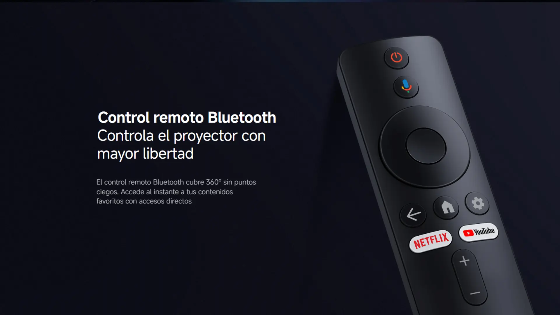 Proyección óptima entre 60" ~ 100" – Brillo 400 lúmenes ISO – Resolución nativa 1080p FHD – Compatible 4K – Bluetooth 5.0 – WiFi de doble banda – Corrección trapezoidal con IA – Android TV – Miracast integrado – Dos altavoces de 5W – Efectos de sonido Dolby Audio - Memoria RAM: 2GB DDR3 - Memoria ROM: 16GB eMMC