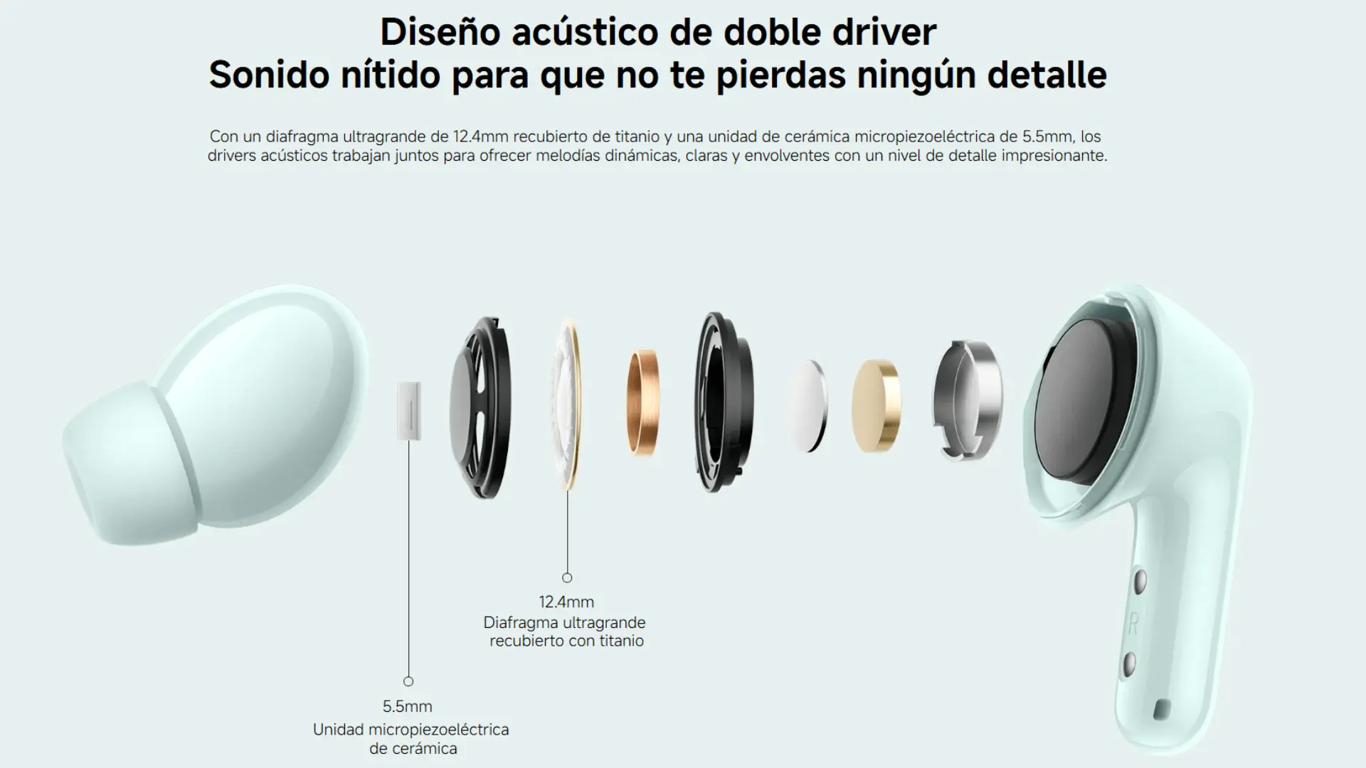 | Dimensiones de un solo auricular | 31,13 mm x 21,34 mm x 23,5 mm |
