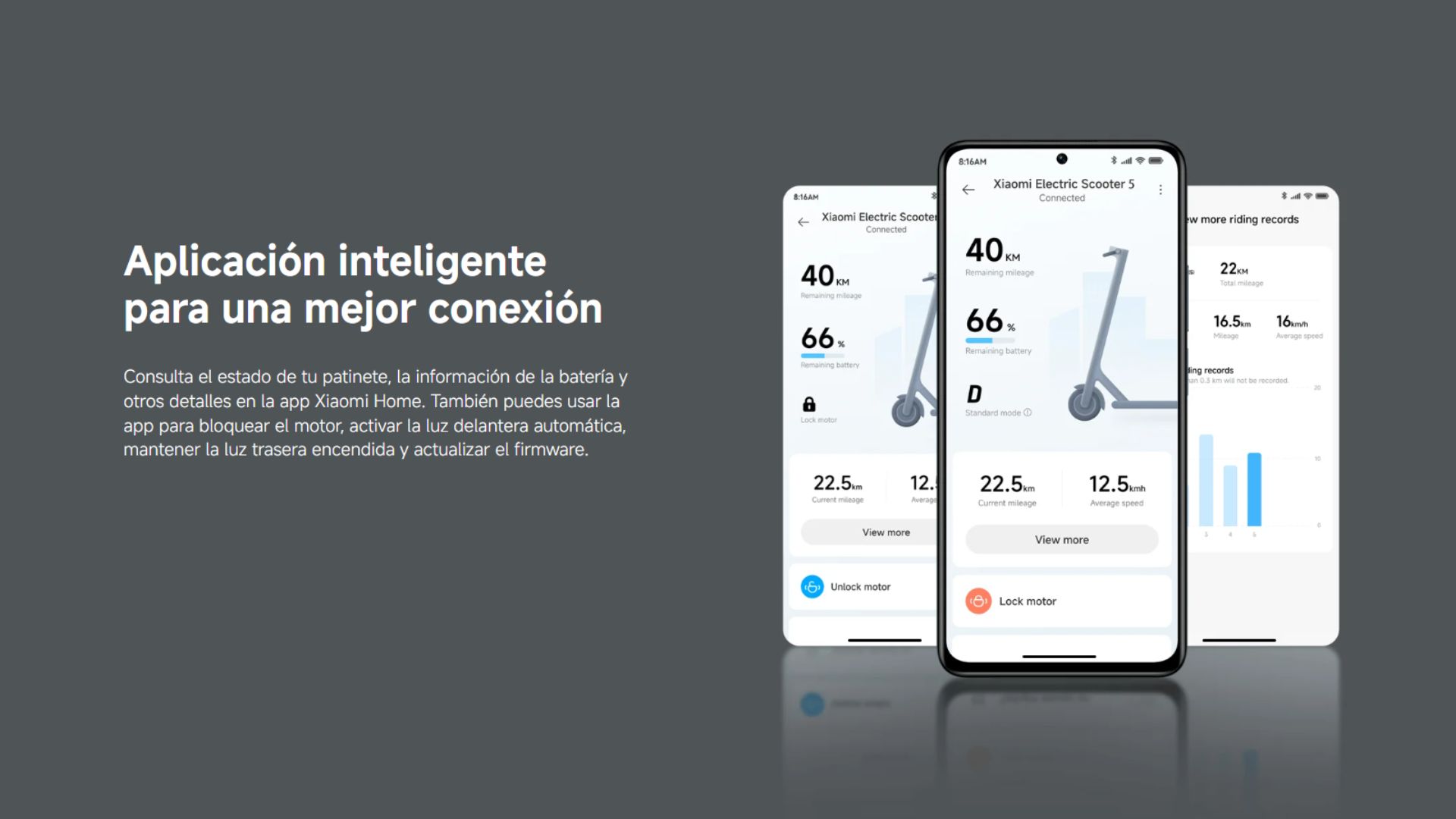 | Velocidad Máxima | 25 km/h (velocidad máxima para cada modo: Modo caminar: 6 km/h; Modo estándar: 20 km/h; Modo deportivo: 25 km/h) |