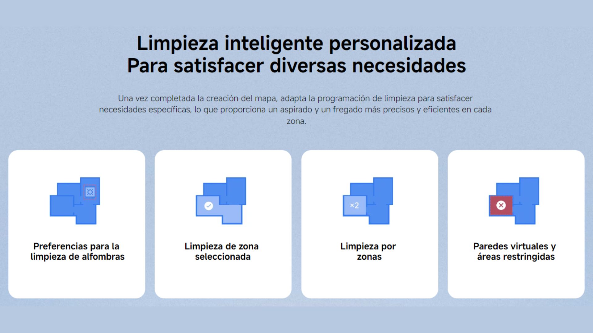 Contenido del Paquete 1x robot aspirador (cepillo principal, cubierta del cepillo principal y depósito de polvo instalados) | 1x conjunto de mopa y depósito de agua (almohadilla de la mopa instalada) | 1x cepillo lateral | 1x adaptador de corriente | 1x base de carga | 1x manual de usuario | 1x aviso de garantía