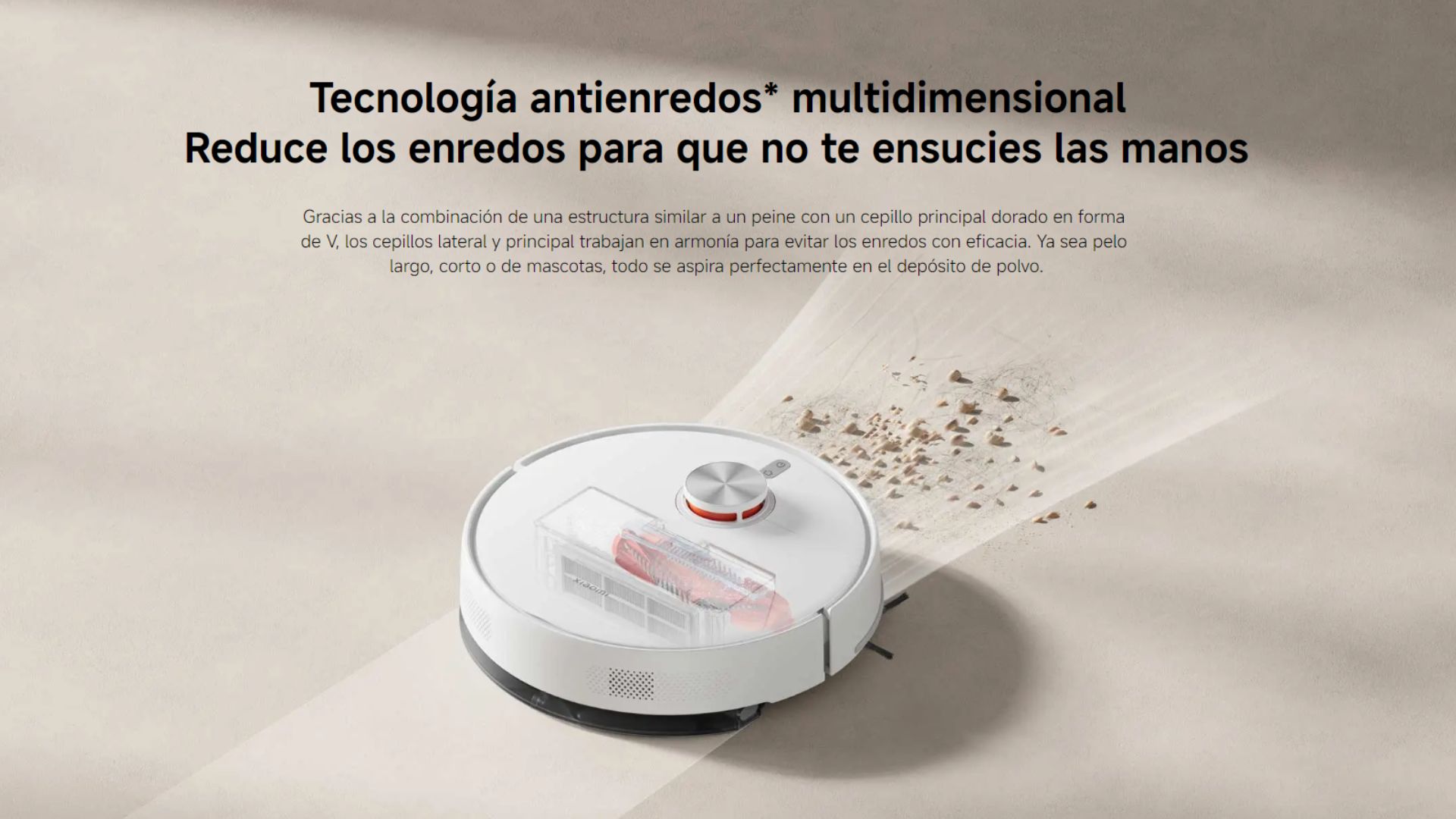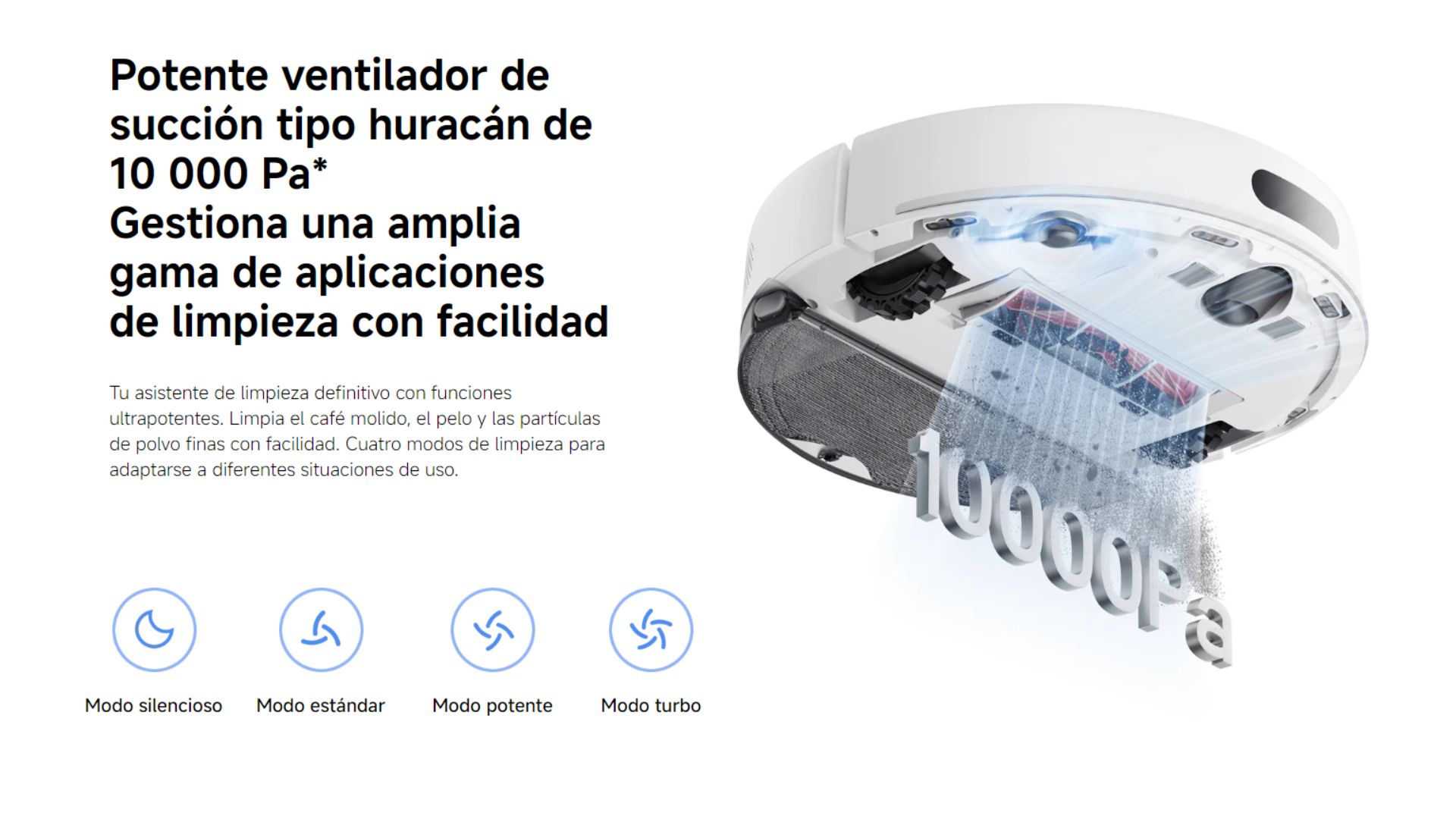 | Contenido del Paquete | 1 robot aspirador | 1x base de carga | 1x cepillo lateral (no instalado) | 1x cepillo principal (preinstalado) | 1x placa de mopa (incluida la almohadilla) | 1x depósito de polvo (preinstalado) | 1x adaptador | 1x manual de usuario | 1x aviso de garantía | 1x cubierta del cepillo |
