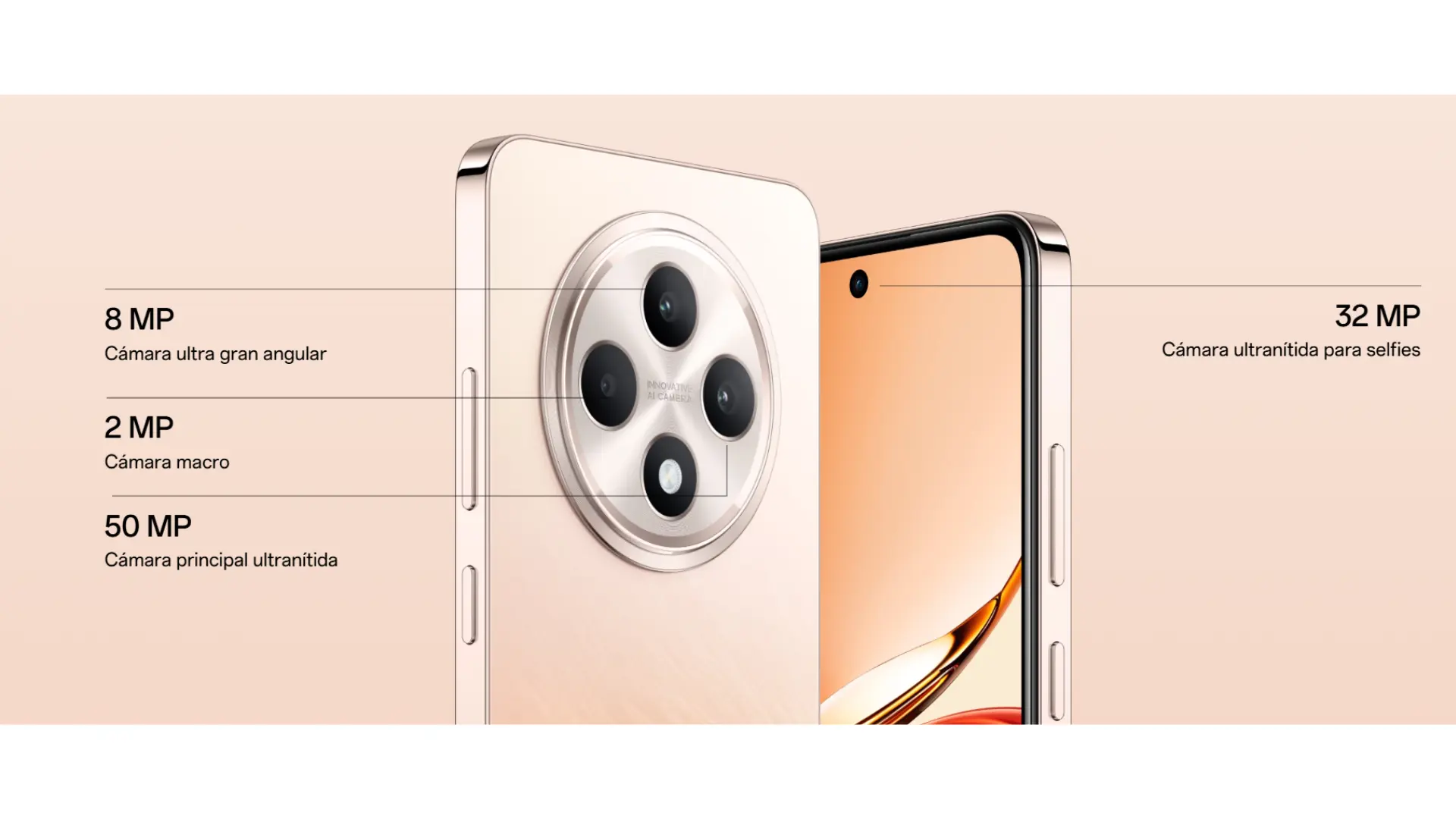 | Camara trasera | 50MP, f/1.88, OIS, Wide Angle - 8MP, Ultra Wide Angle - 2MP, f/2.4, Macro |