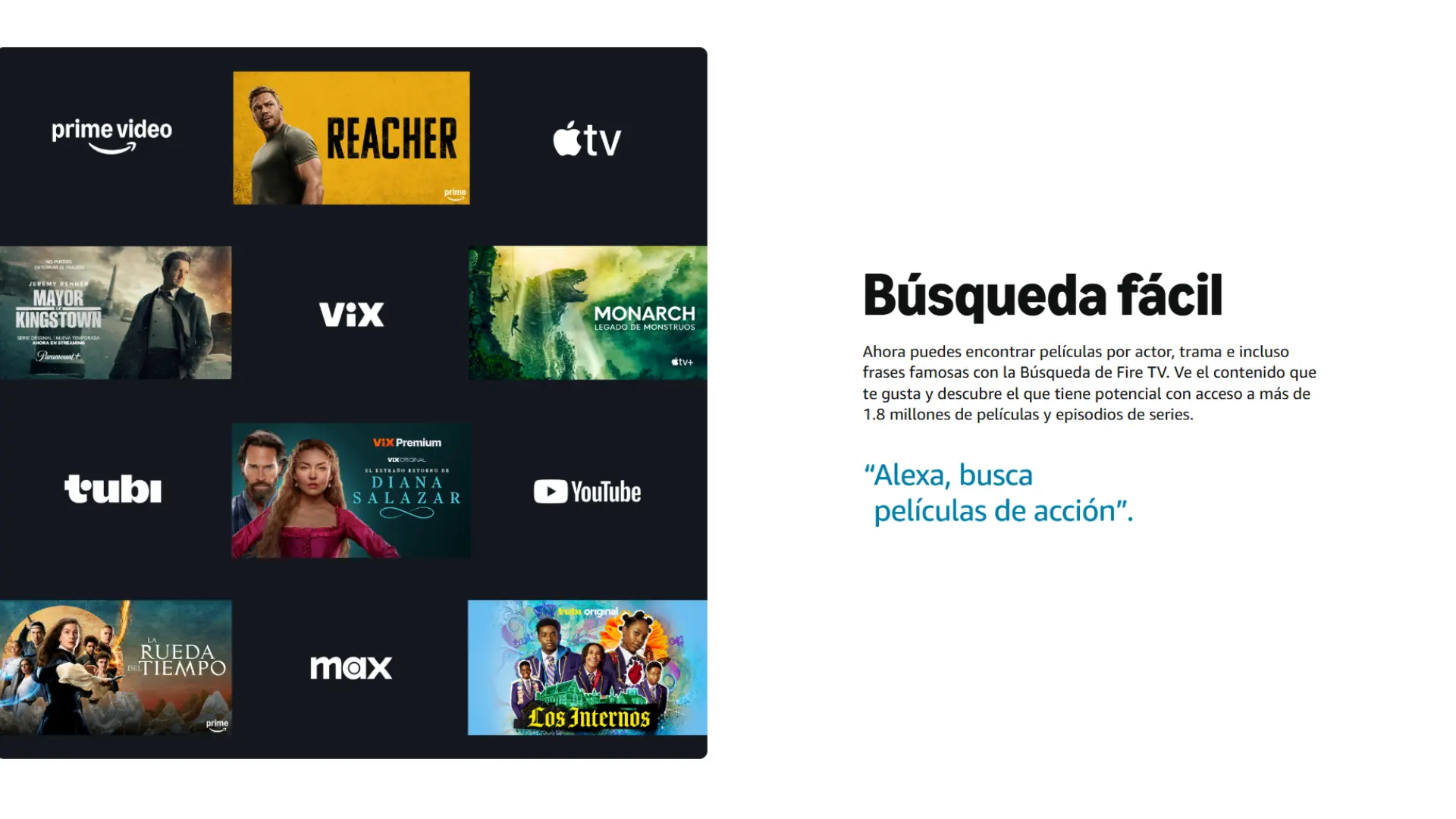 Compatibilidad de voz Con el Control remoto por voz Alexa (incluido) o la app gratuita de Fire TV (disponible para descargarla en Fire OS, Android e iOS).