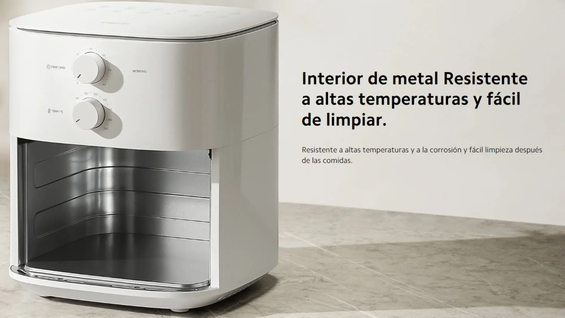 Alta potencia de 1550 W. Hace circular aire caliente para cocinar por convección.