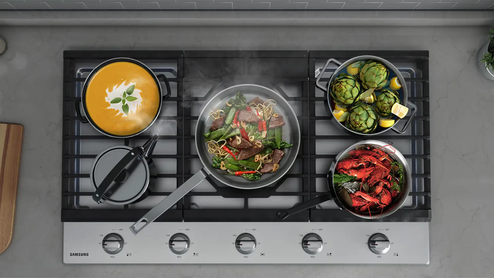 Los quemadores potentes tienen la flexibilidad de acomodar varios platos a la vez
