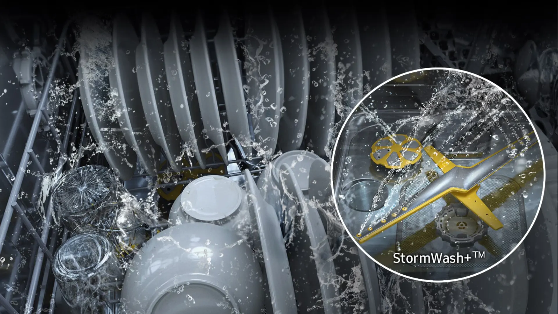Limpia ollas, sartenes y platos muy sucios de forma rápida y completa. El nuevo y potente sistema StormWash+™ ofrece un rendimiento de lavado más intenso. Libera un chorro de agua en forma de círculo desde más ángulos, y los dos brazos de lavado ayudan a lavar de forma rápida, eficaz y eficiente en términos de energía