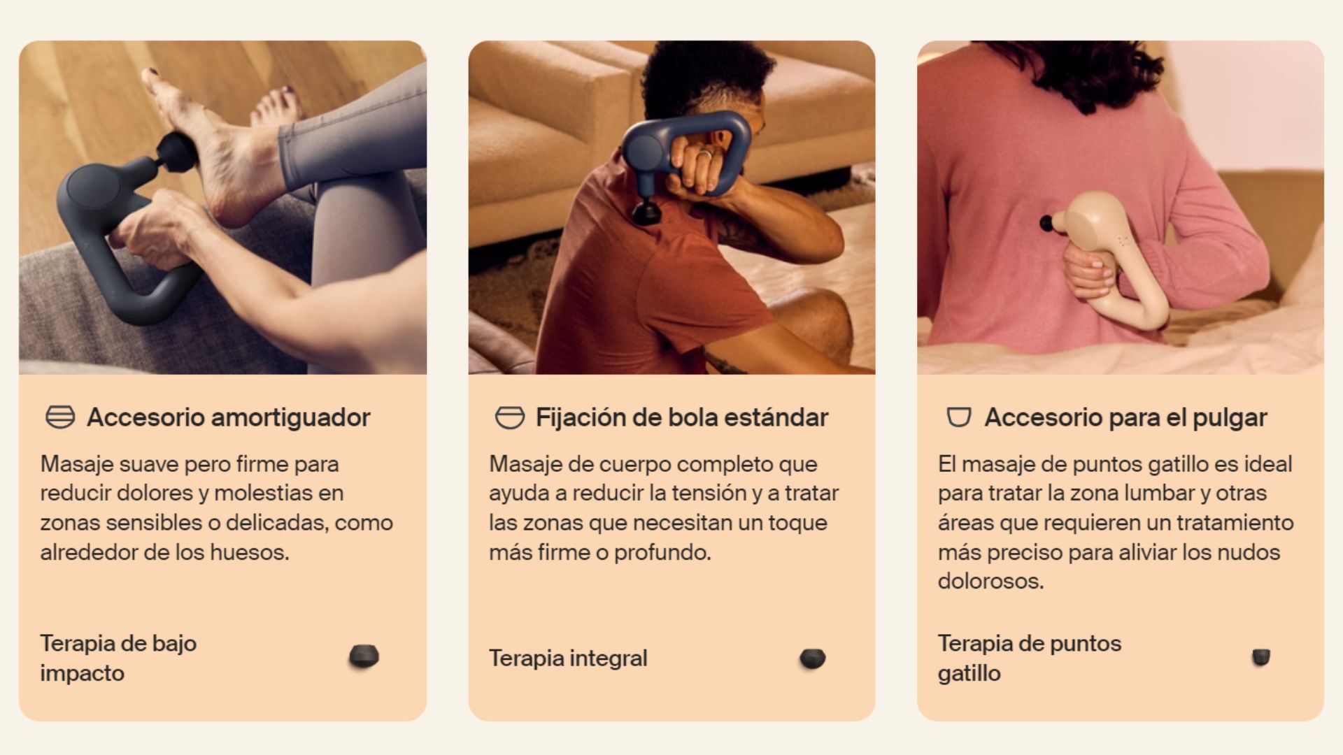 | Amplitud de Percusión | 10 mm (un masaje más suave y relajante en comparación con los 16 mm de la serie PRO) |