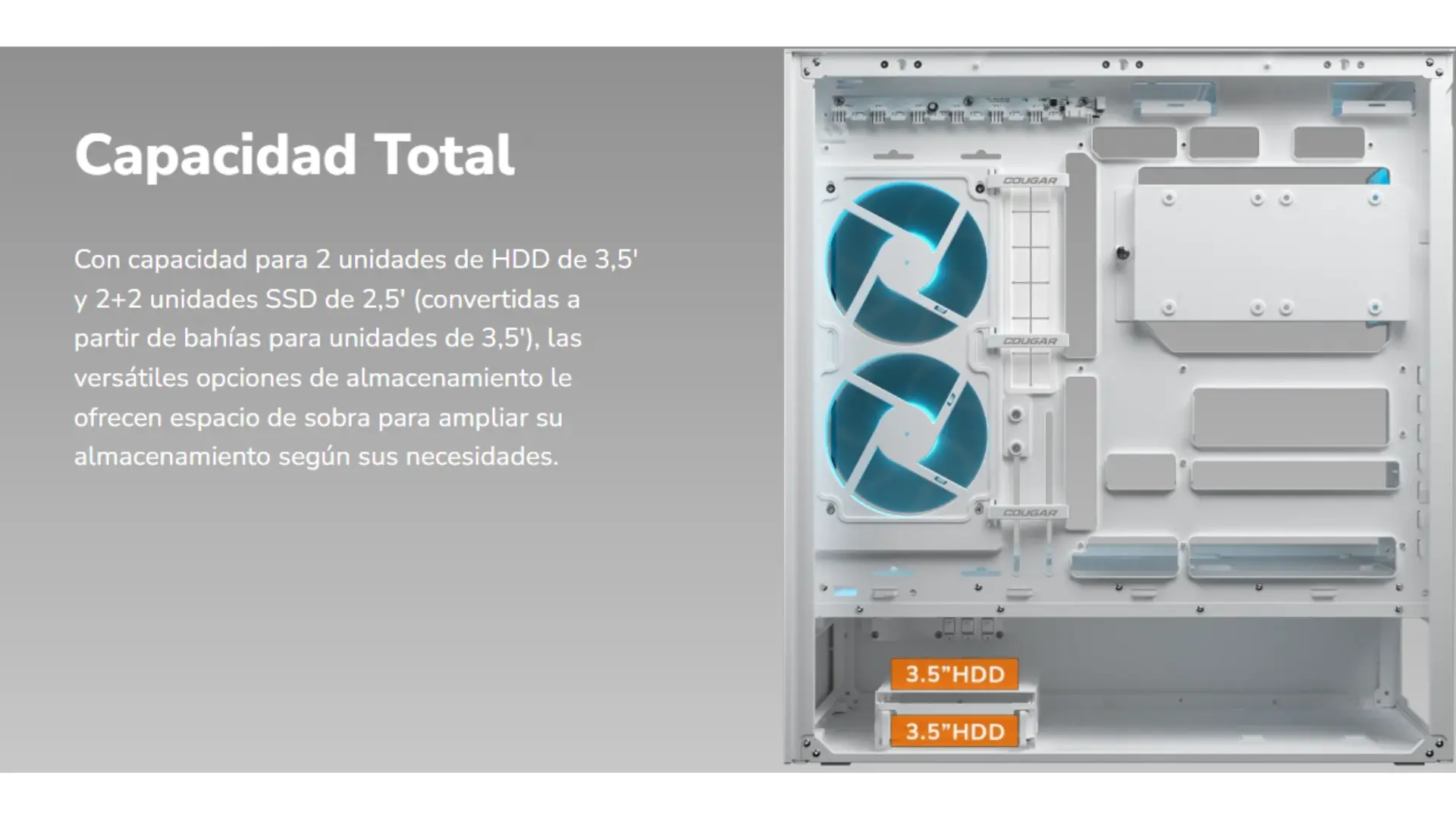 Eleva la estética y el rendimiento de tu PC con el Case COUGAR CFV235 White, una torre media diseñada para quienes buscan un equilibrio perfecto entre elegancia minimalista y funcionalidad avanzada. Su acabado en blanco impecable no solo resalta en cualquier espacio de trabajo o juego, sino que ofrece una estructura robusta ideal para proteger tus componentes de alto rendimiento.