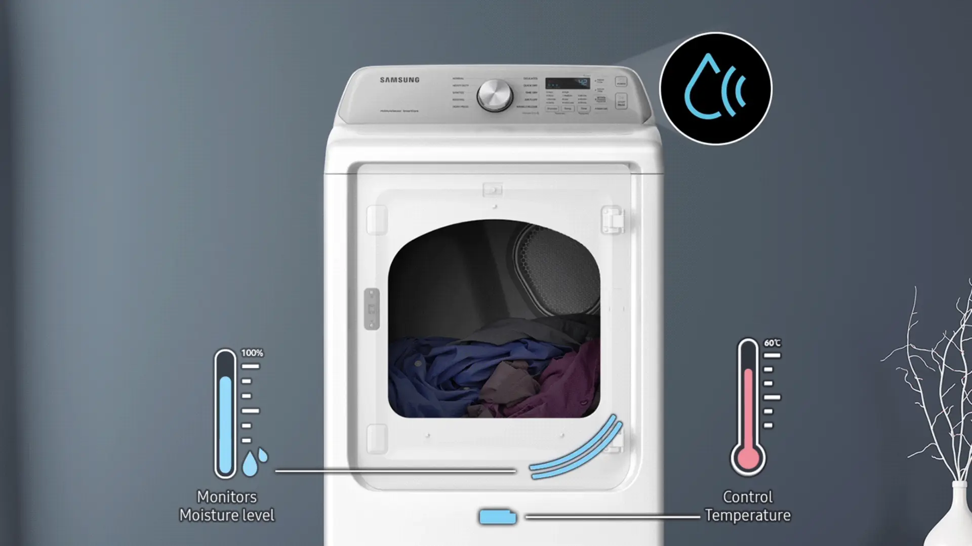 Asegúrate de que tu ropa esté perfectamente seca sin necesidad de revisarla constantemente. La función Sensor Dry optimiza automáticamente el tiempo y la temperatura del ciclo de secado. Por lo tanto, la ropa siempre queda completamente seca, sin dañarse. Los sensores de humedad evitan que el calor dañe la ropa y el uso excesivo de energía.