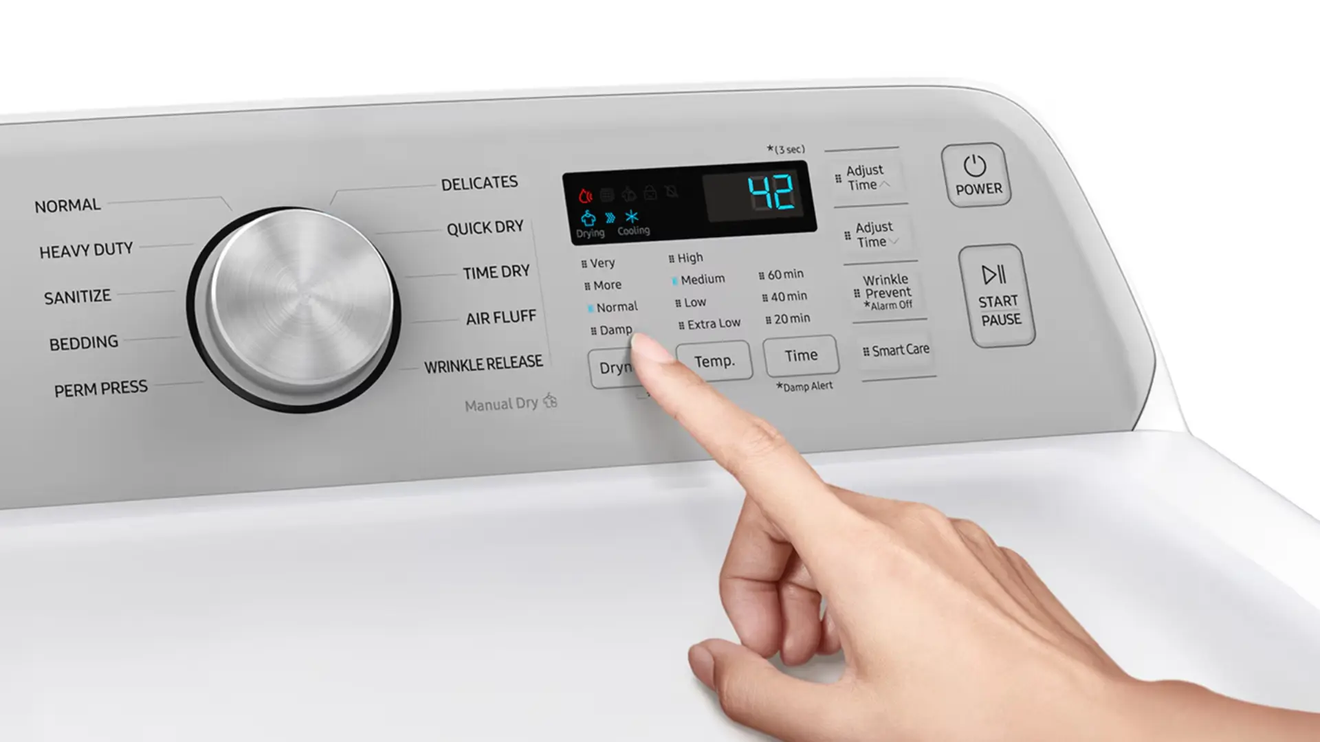 Controla el secado de tus prendas de manera más fácil e intuitiva. El panel de control digital incluye una variedad de opciones para que puedas encontrar fácilmente la configuración correcta. También tiene una pantalla digital que muestra claramente el tiempo de secado. Además, con la rueda de selección es mucho más simple e intuitivo elegir un ciclo.
