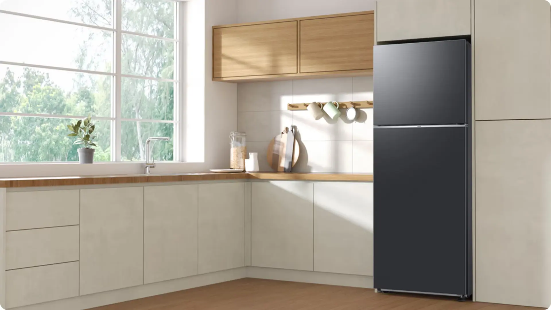 Da a tu hogar un aspecto elegante y moderno. El diseño pulcro y contemporáneo cuenta con puertas planas sorprendentemente hermosas con una decoración plateada de primera calidad alrededor del borde y manijas empotradas que no sobresalen. Así que encajará perfectamente con los electrodomésticos de cocina y mejorará el aspecto de tu hogar.