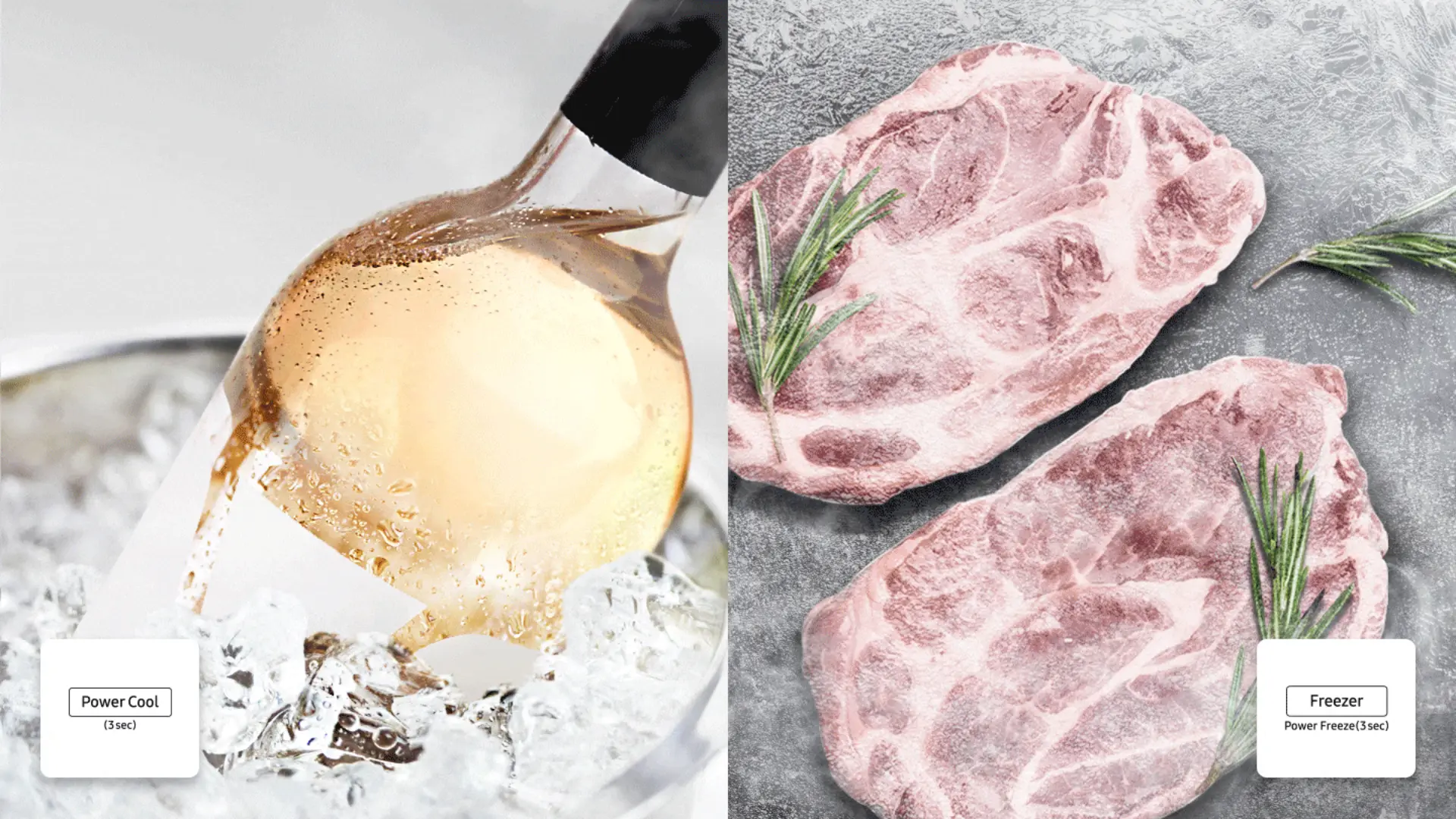 Obtén un rápido rendimiento de enfriamiento. Con solo tocar un botón, Power Cool expulsa aire intensamente frío en el refrigerador para enfriar rápidamente los alimentos o tus bebidas favoritas. Además, Power Freeze envía una ráfaga rápida de aire frío al congelador. Es ideal para congelar o reafirmar alimentos congelados y fabricar hielo.