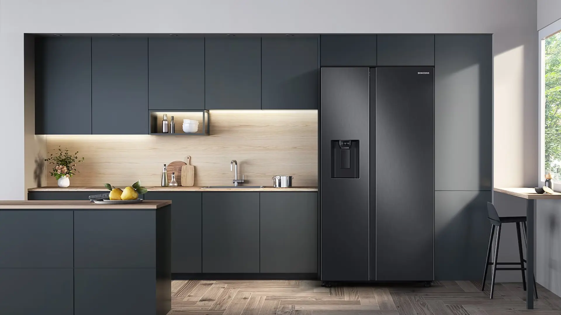 Dale a tu hogar una apariencia integrada con estilo. La refrigeradora tiene un aspecto moderno, prolijo y elegante. Además, tiene hermosas puertas con borde impecable, un dispensador minimalista y manijas empotradas que no sobresalen ni se interponen.