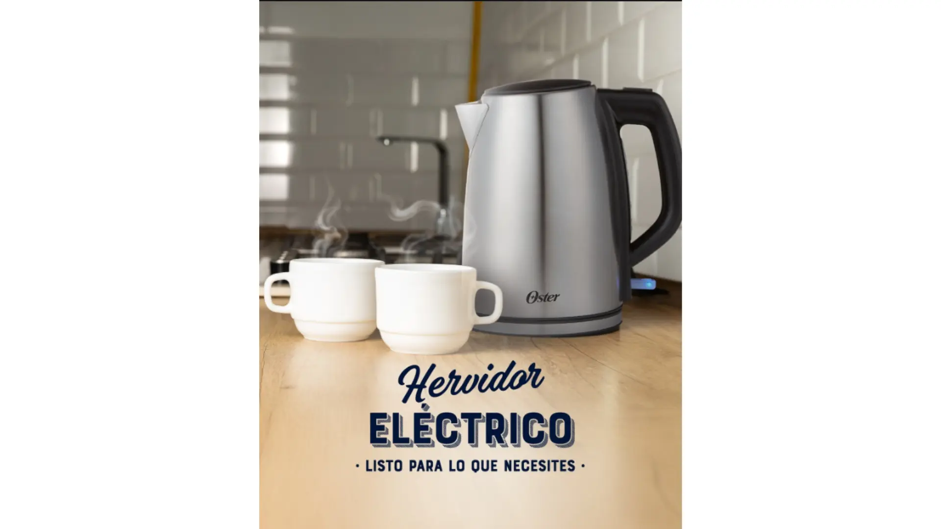 El hervidor eléctrico Oster® con su diseño moderno de acero inoxidable brinda durabilidad, uso fácil y el estilo que necesitas en tu cocina. ¡Te permite hervir el agua en tan solo unos minutos! Además, es muy seguro, porque contiene protección que impide que hierva el agua hasta secarse.
