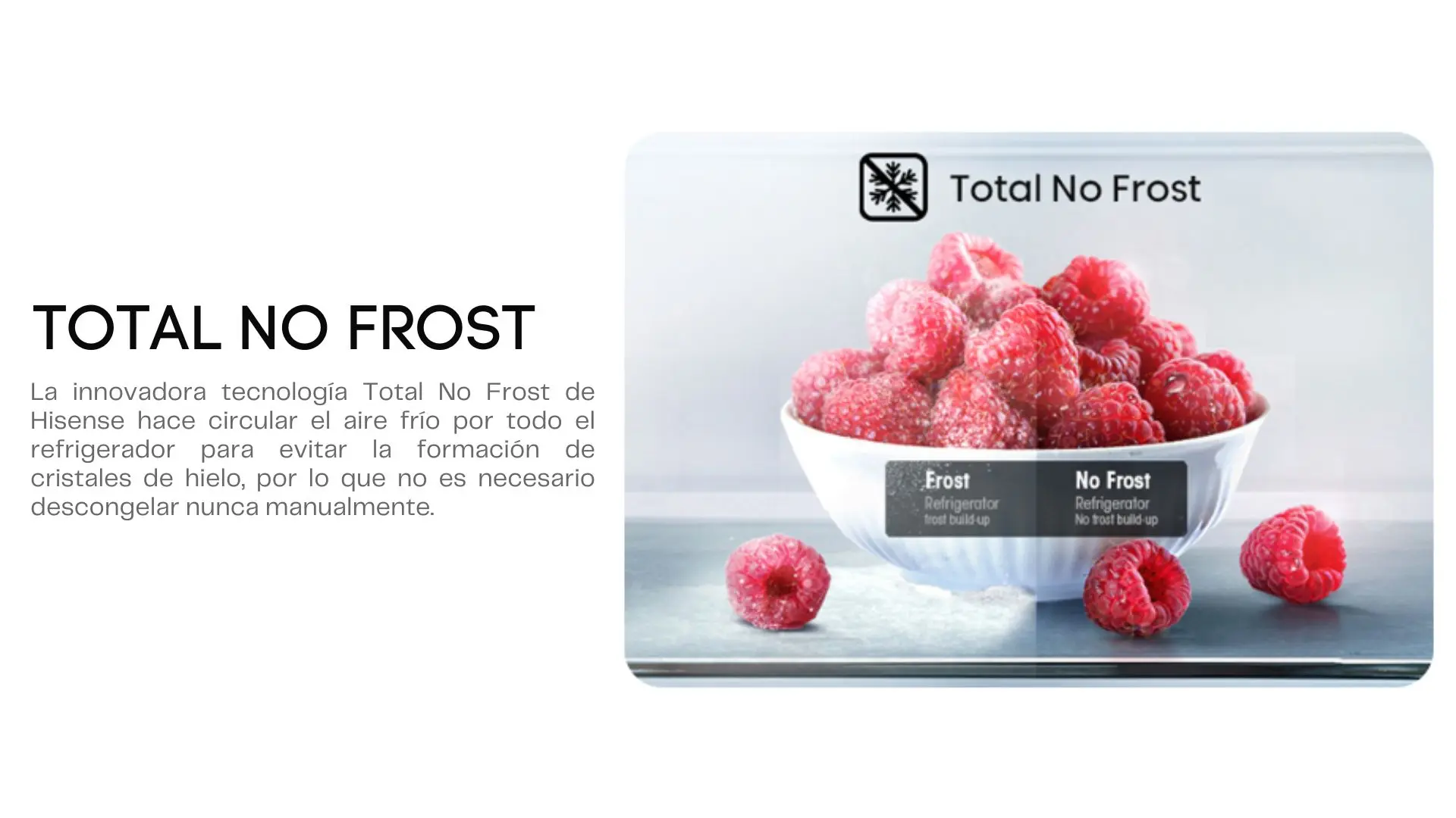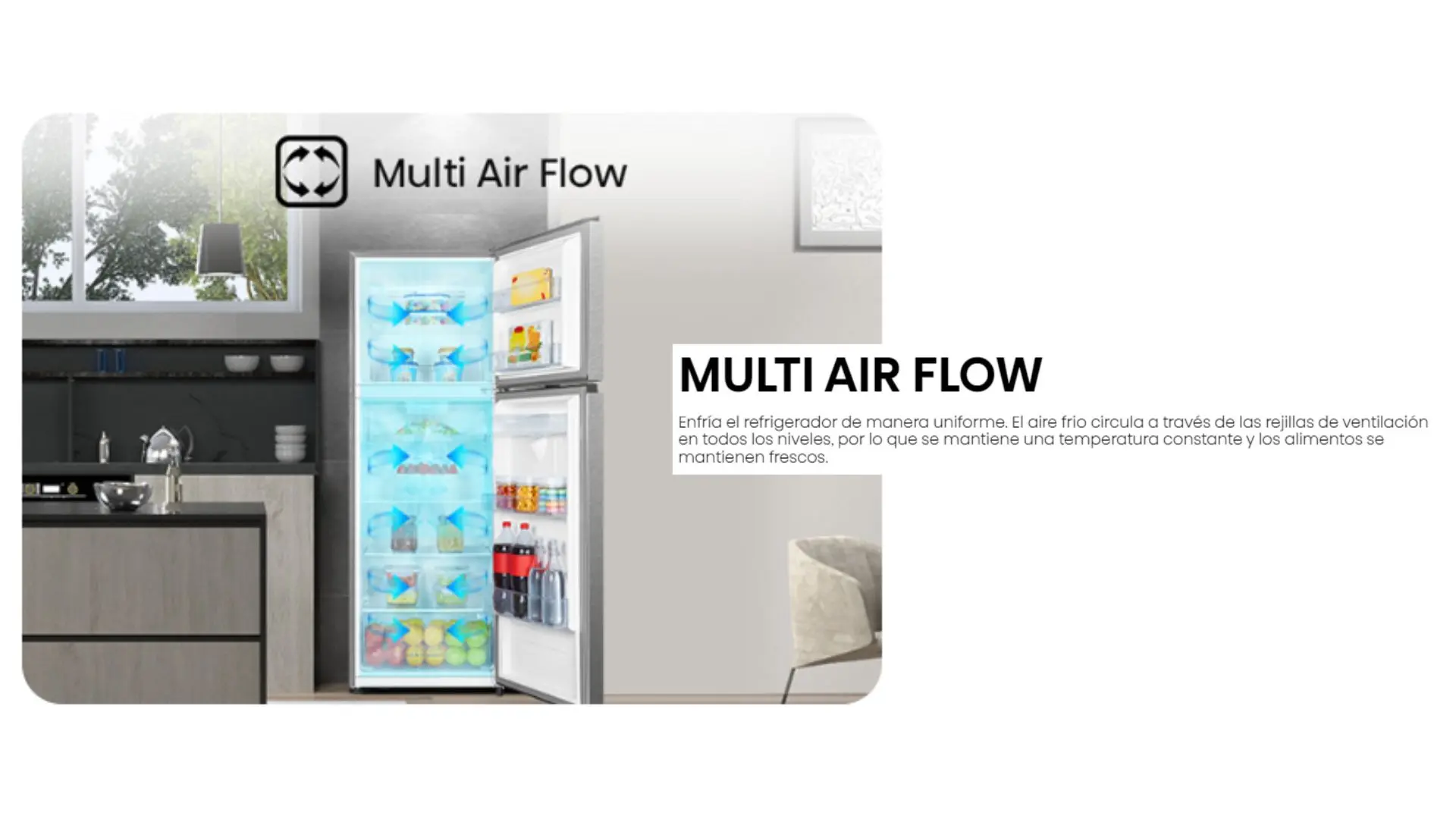 Con el Hisense refrigerador RT11N6WKX1 puedes ajustar el tamaño de las patas para una mayor comodidad, además que con su sistema de multi air flow y total no frost vas a poder tener tus alimentos a la temperatura deseada.