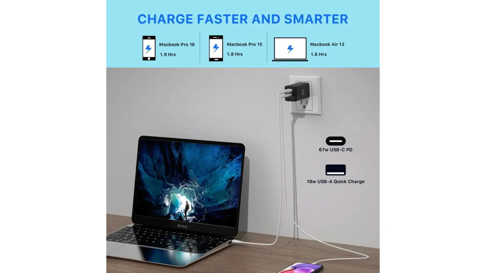 | Cantidad de Puertos | 67W USB-C PD 18W USB-A QC |