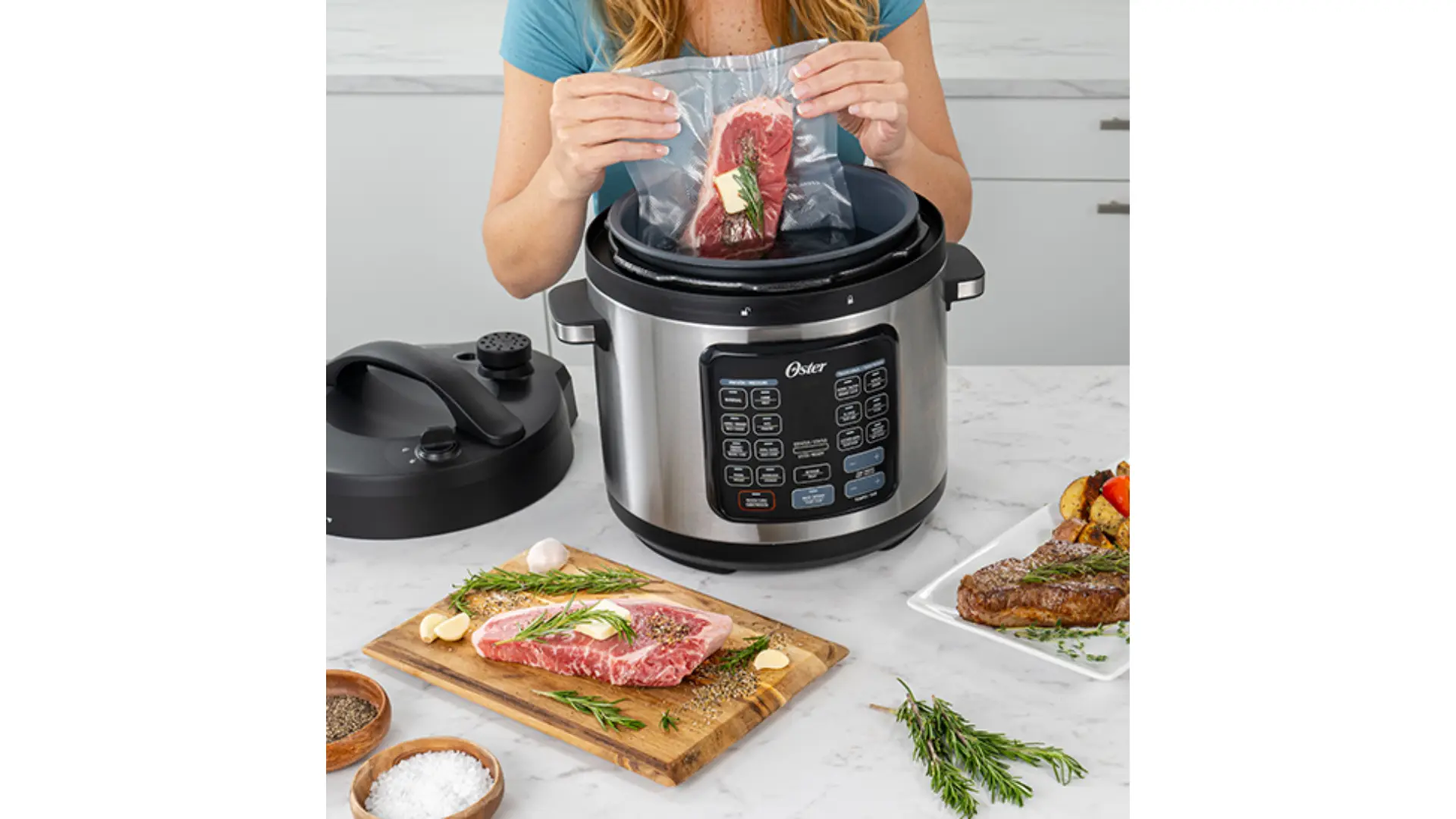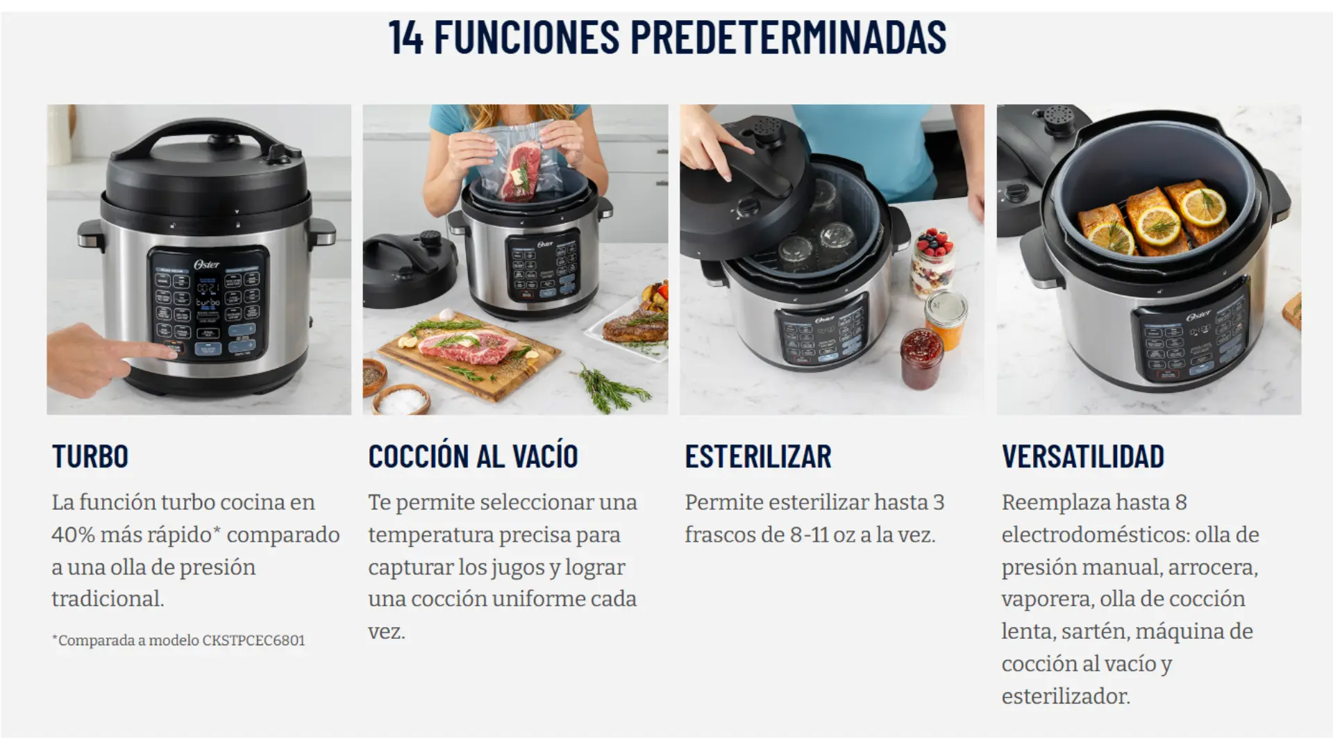 La Olla Multifuncional Oster de 5.7L cocina un 40% más rápido que las ollas tradicionales.