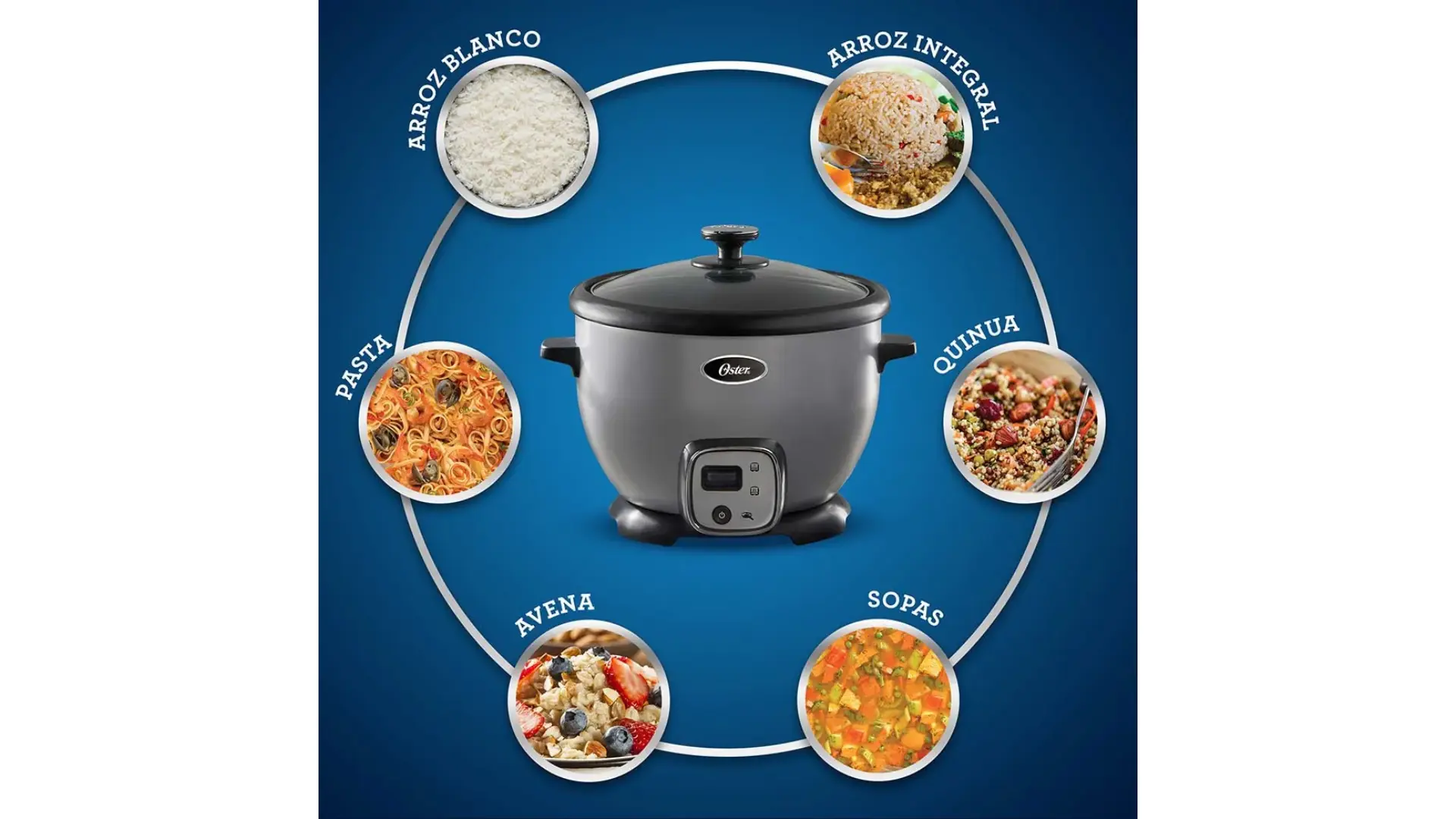 La arrocera multiuso Oster® cuenta con función de sofrito para preparar variedades de alimentos. Además, contiene una olla interior extraíble con recubrimiento antiadherente. Preparar sus comidas favoritas ahora es más fácil y saludable. ¡Disfruta de su nuevo diseño ideal para tu cocina! La arrocera multiuso Oster® cuenta con función de sofrito para preparar variedades de alimentos. Además, contiene una olla interior extraíble con recubrimiento antiadherente. Preparar sus comidas favoritas ahora es más fácil y saludable. ¡Disfruta de su nuevo diseño ideal para tu cocina!