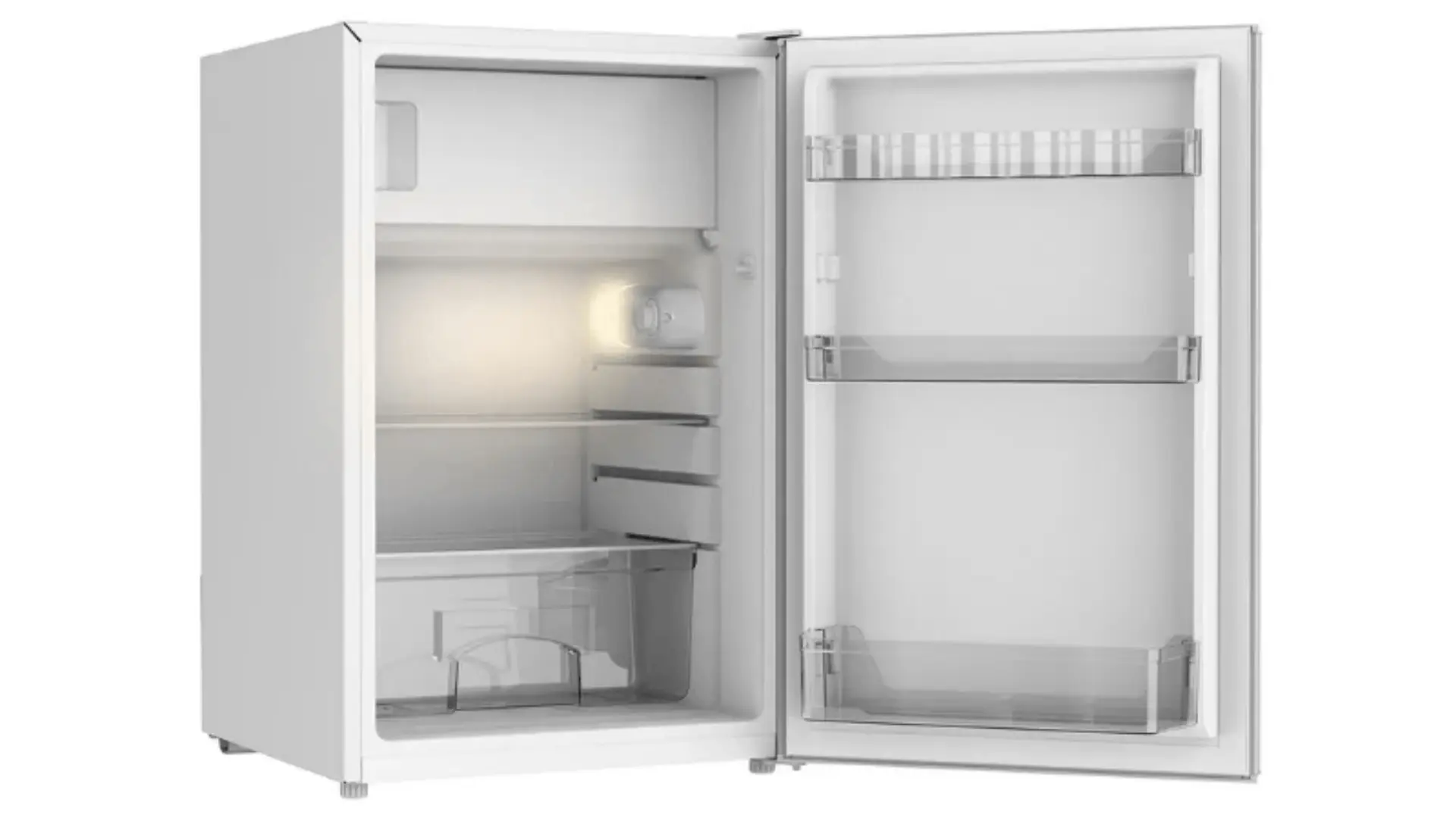 El tamaño ideal para espacios reducidos. Cuenta con espacio de congelador, cajón para frutas y verduras, anaqueles en puerta, termostato mecánico, 2 parrillas de vidrio, rack con capacidad para 6 latas e iluminación interior