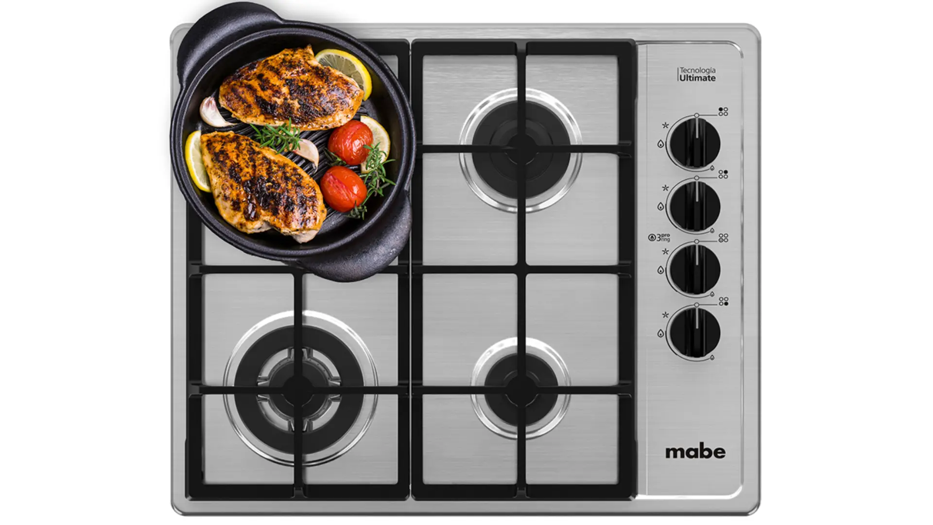 Plantilla a Gas LP Empotrable Mabe 24″ 4 Quemadores Plateada/Negro PMI6055PF0