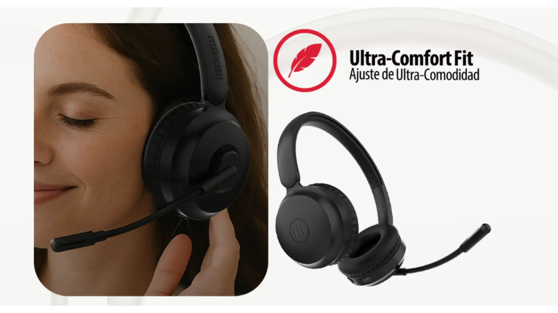 Headset Maxell HS-BTH inalámbrico con micrófono integrado en elegante color negro. Con conectividad Bluetooth estable, batería recargable de larga duración y diseño ergonómico, ofrece comodidad y calidad de sonido estéreo para música, llamadas y videoconferencias. Compatible con smartphones, tablets, laptops y consolas.