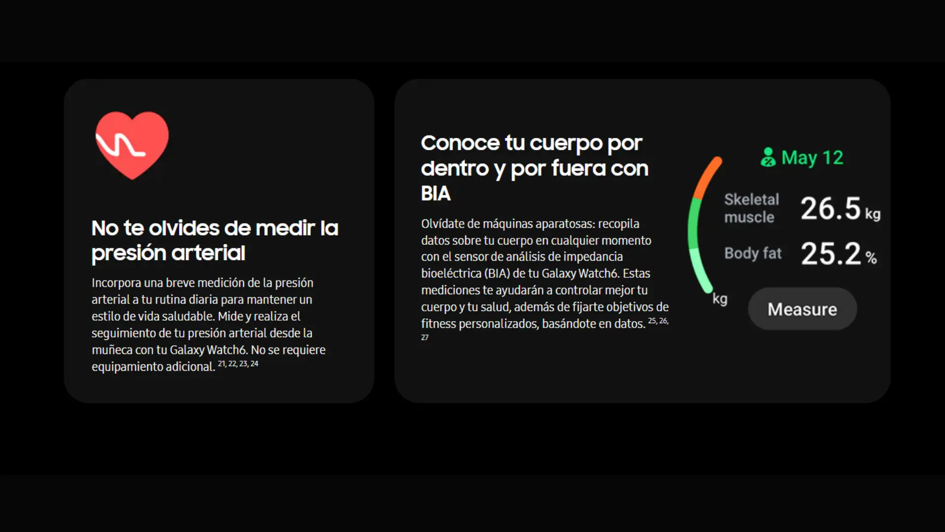 Registra todos tus logros y comprueba tus progresos físicos con Galaxy Watch6. Realiza el seguimiento de tus movimientos durante más de 90 entrenamientos, incluyendo la natación a cubierto y el yoga, o, incluso, crea los tuyos propios. Si te olvidas de darle a Inicio, el smartwatch reconoce y registra entrenamientos seleccionados como el running, las caminatas y, ahora, el ciclismo para que no pierdas tus valiosos datos.