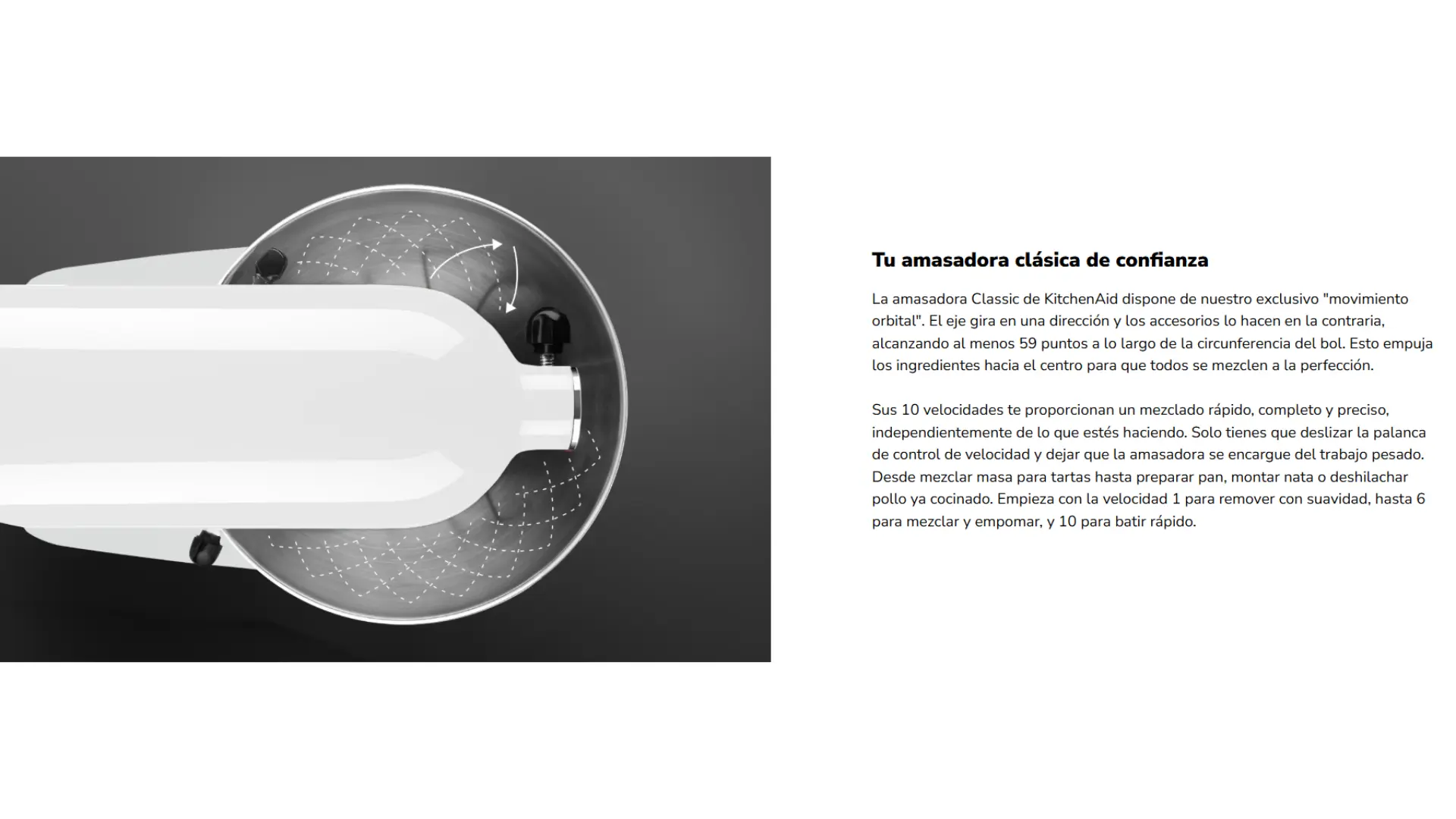 Esta versátil amasadora lo hace todo. Con las famosas curvas de KitchenAid y el exclusivo movimiento de órbita, este aparato no puede faltar en tu cocina.