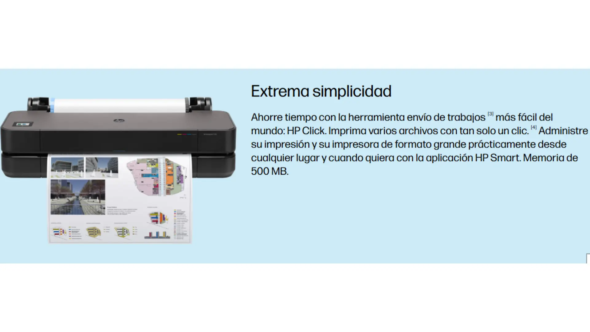 La impresora HP DesignJet T250 de 24" es una solución profesional de gran formato diseñada para arquitectos, ingenieros y diseñadores que requieren precisión y eficiencia. Con tecnología térmica de inyección de tinta, ofrece impresiones CAD nítidas, planos detallados y gráficos de alta resolución. Su conectividad Wi-Fi y USB permite una integración fluida en entornos de trabajo modernos, mientras que su diseño compacto optimiza el espacio sin sacrificar rendimiento. Compatible con rollos de hasta 24 pulgadas, es perfecta para oficinas técnicas que buscan calidad y velocidad.