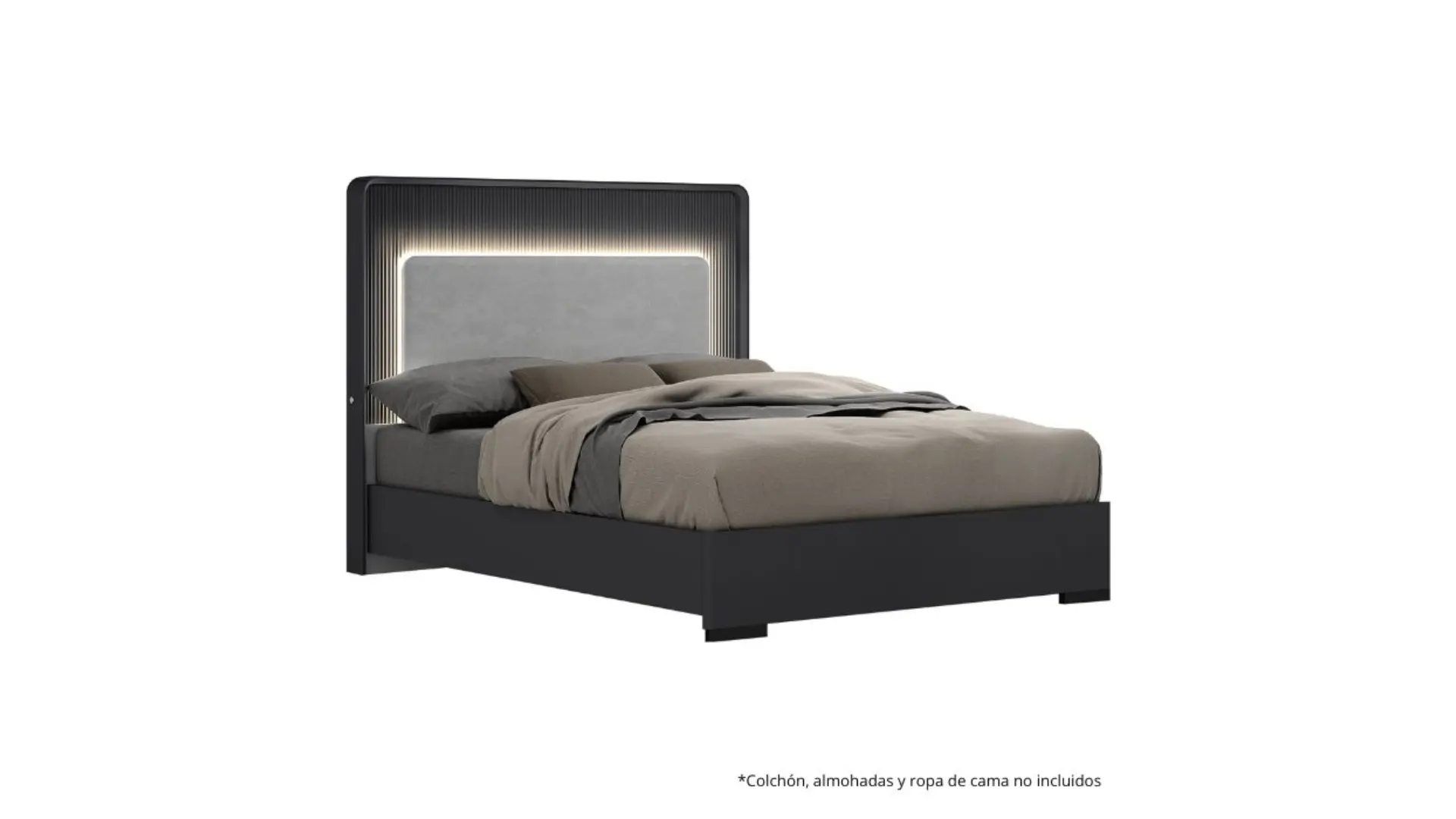 Cama Queen Barcelona Design Anoia con Luz LED Grafito/Negro SB107BQ-GFT