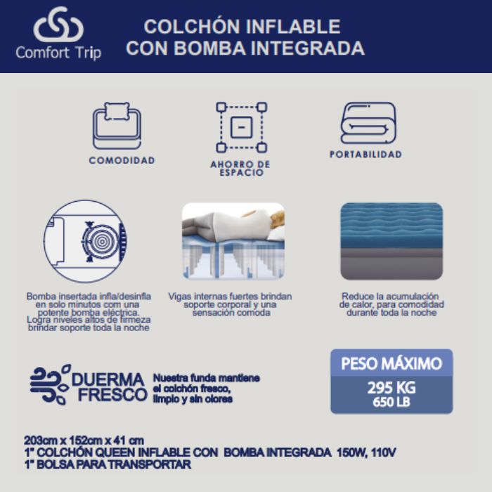 Colchón Inflable Queen Comfort Trip 150W/110V Azul/Gris FM-QUEEN-AIR