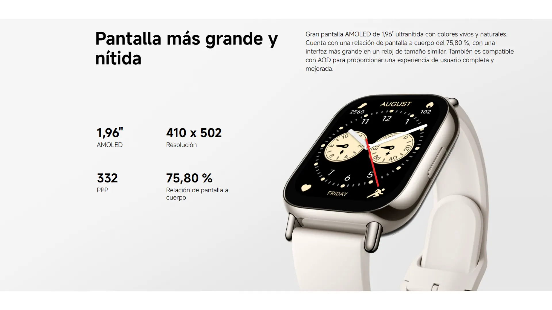 Pantalla AMOLED de 1,96" | hasta 18 días de batería | GNSS integrado