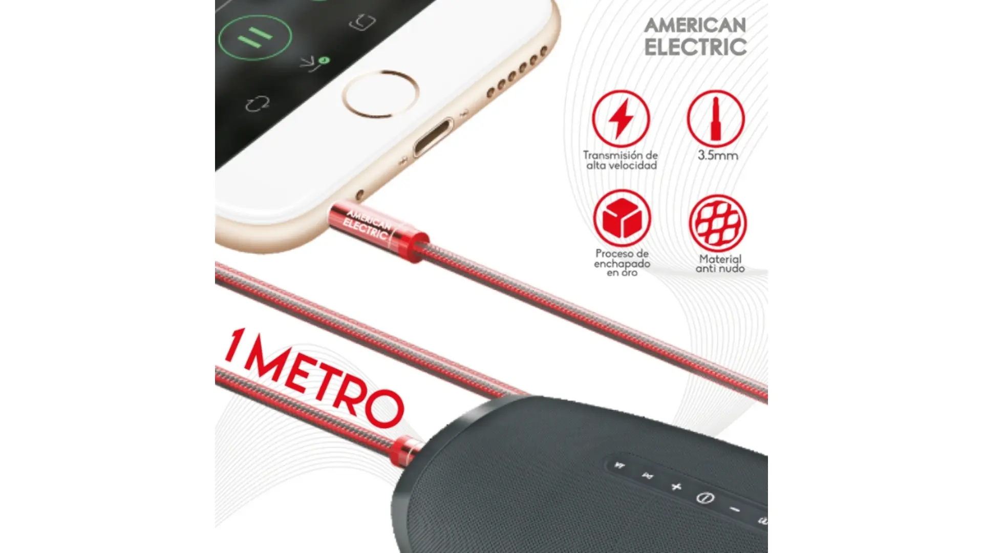 Cable Auxiliar 3.5mm American Electric 1mt Rojo JF-LS-Y01