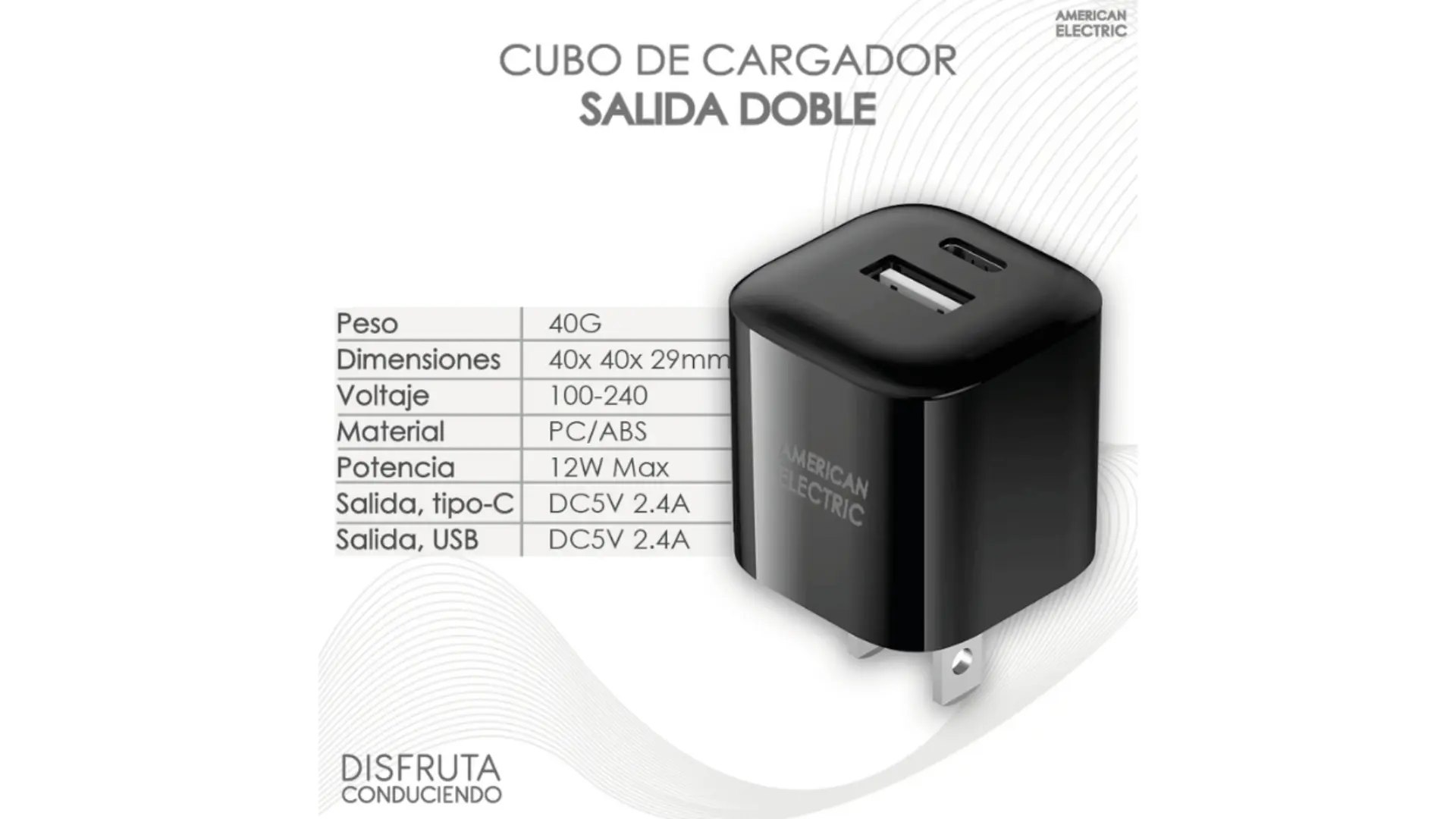 | Salida USB-A | DC5V 2.4A |