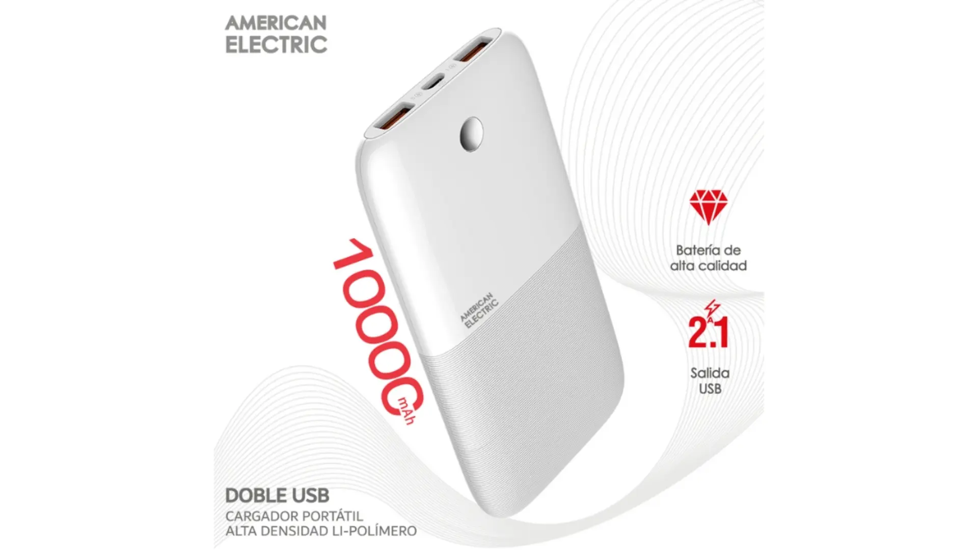 Batería Portátil American Electric 10.000mAh USB-A Blanca JF-PR1009