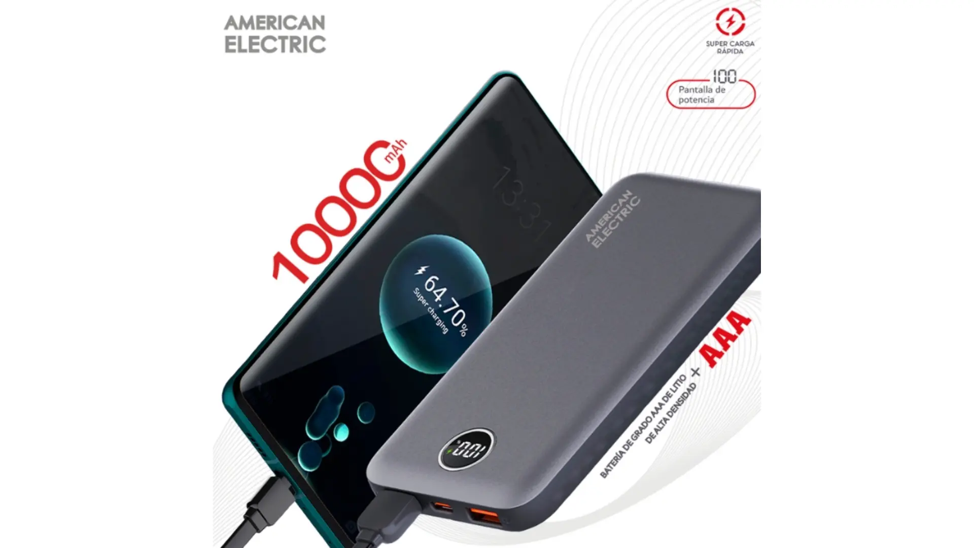Batería Portátil American Electric 10.000mAh USB-A Gris JF-PQ10