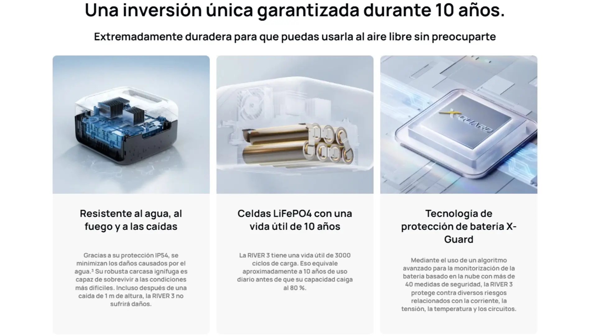 | Ciclo de vida | 3000 ciclos a una capacidad del 80 % |