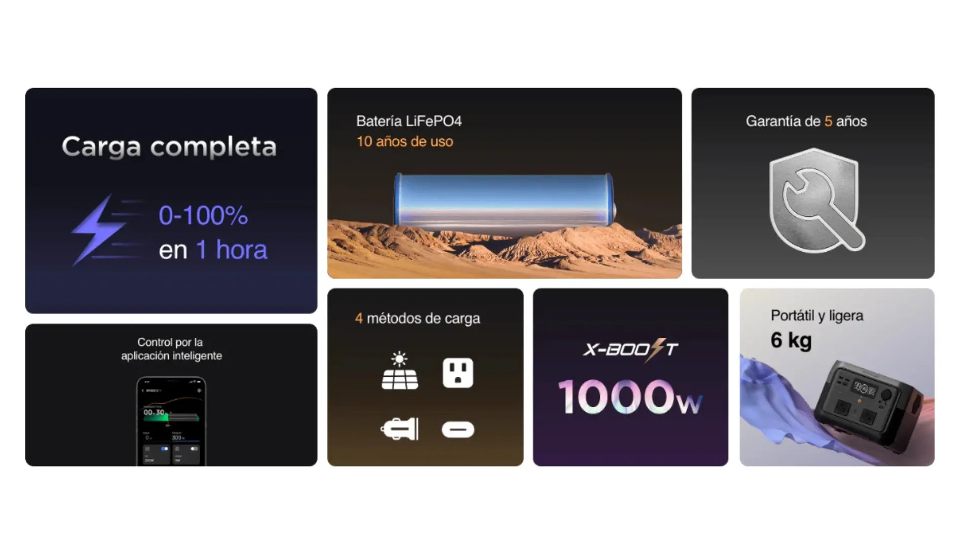 | Entrada/Salida USB-C | 5/9/12/15/20V, 5A, 100W Máx |
