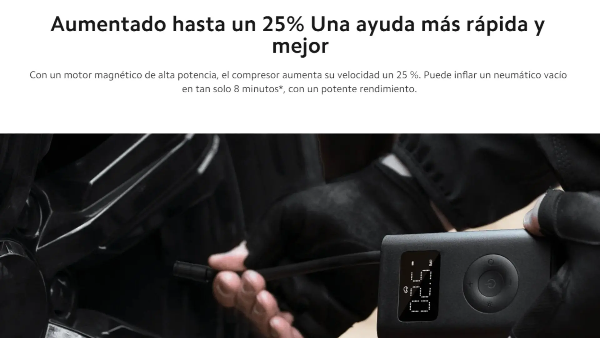 El hardware mejorado se traduce en una mayor eficiencia energética. Con la carga completa, puede inflar diez neumáticos* continuamente o dos neumáticos vacíos* continuamente, lo que simplifica y facilita el mantenimiento rutinario.