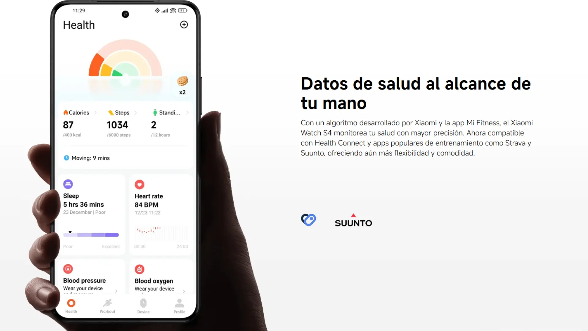 | Sensores | Sensor de frecuencia cardíaca (con sensor de oxígeno en sangre) | Acelerómetro | Giroscopio | Sensor de luz ambiental | Brújula electrónica | Barómetro | Sensor Hall |