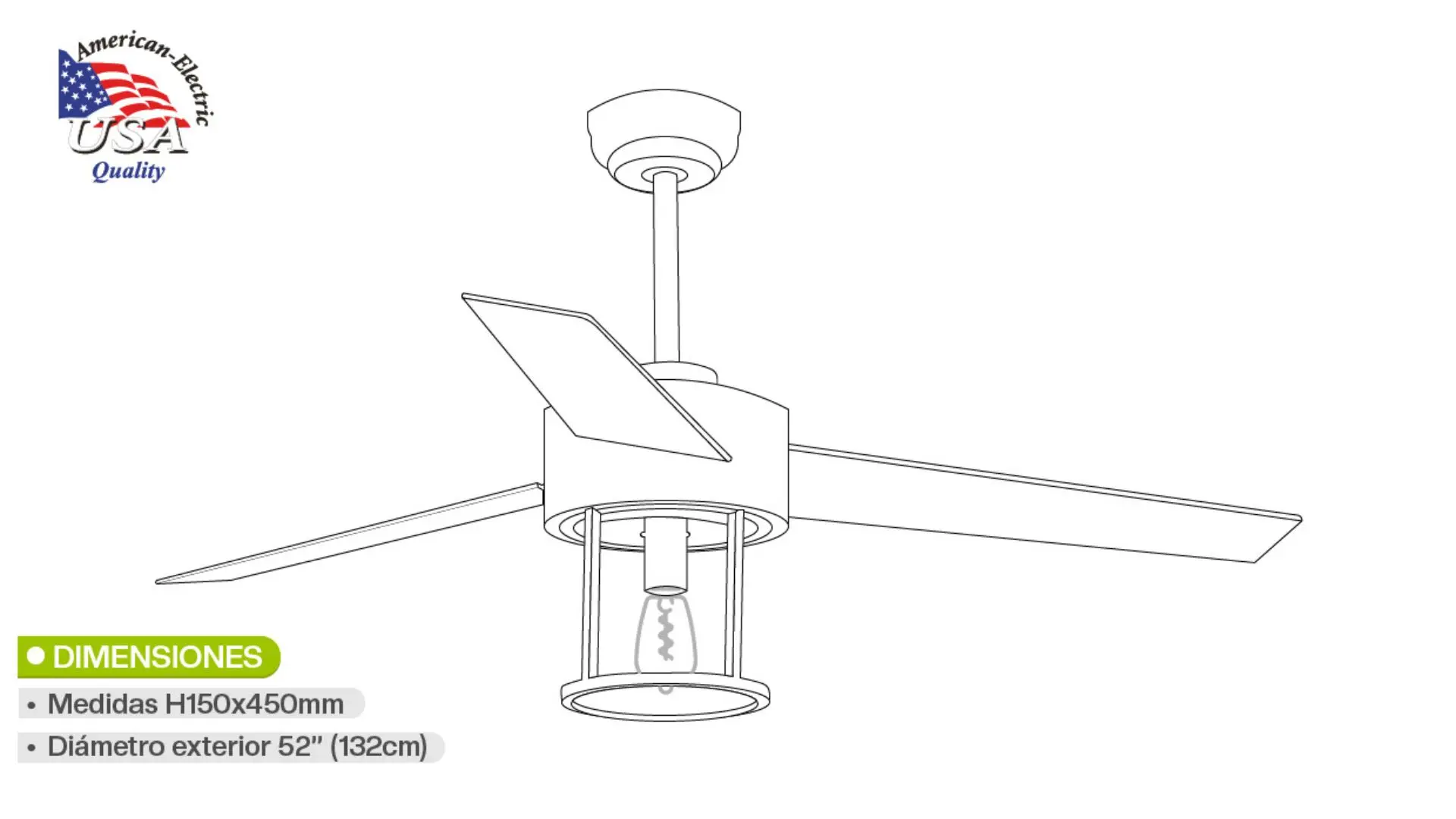 Ventilador de Techo 52" (132cm) | 3 velocidades con control remoto | 3 aspas de madera, un material duradero y de alta resistencia | Incluye bombillo