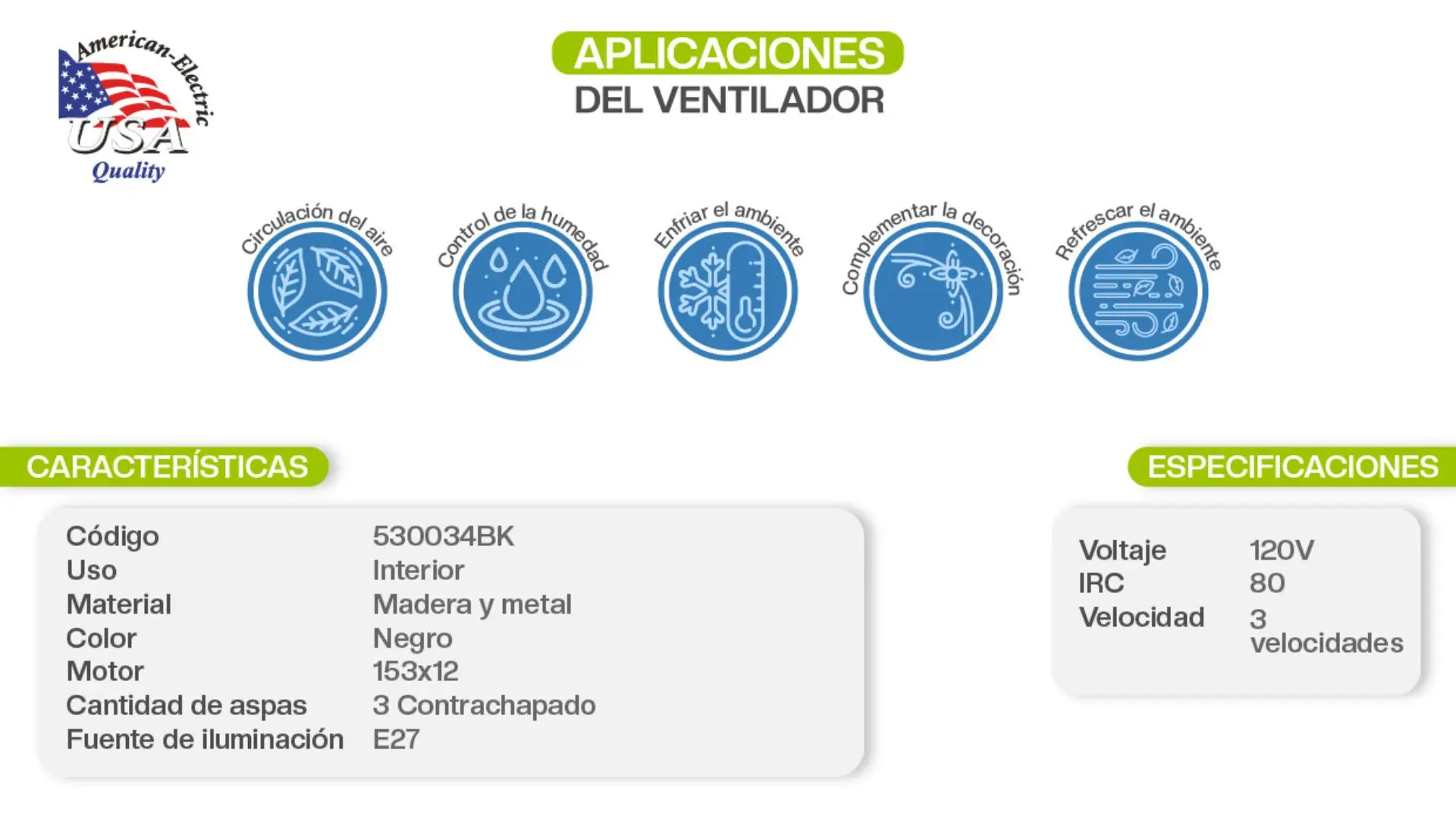Ventilador de Techo American Electric Boreal 52″ Negro 530034BK