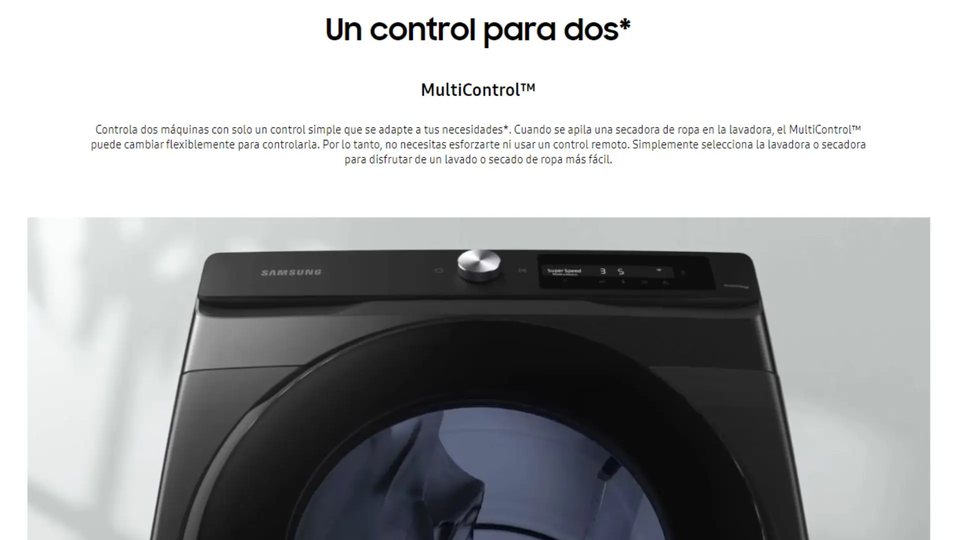 Controla dos máquinas con solo un control simple que se adapte a tus necesidades*. Cuando se apila una secadora de ropa en la lavadora, el MultiControl™ puede cambiar flexiblemente para controlarla. Por lo tanto, no necesitas esforzarte ni usar un control remoto. Simplemente selecciona la lavadora o secadora para disfrutar de un lavado o secado de ropa más fácil.