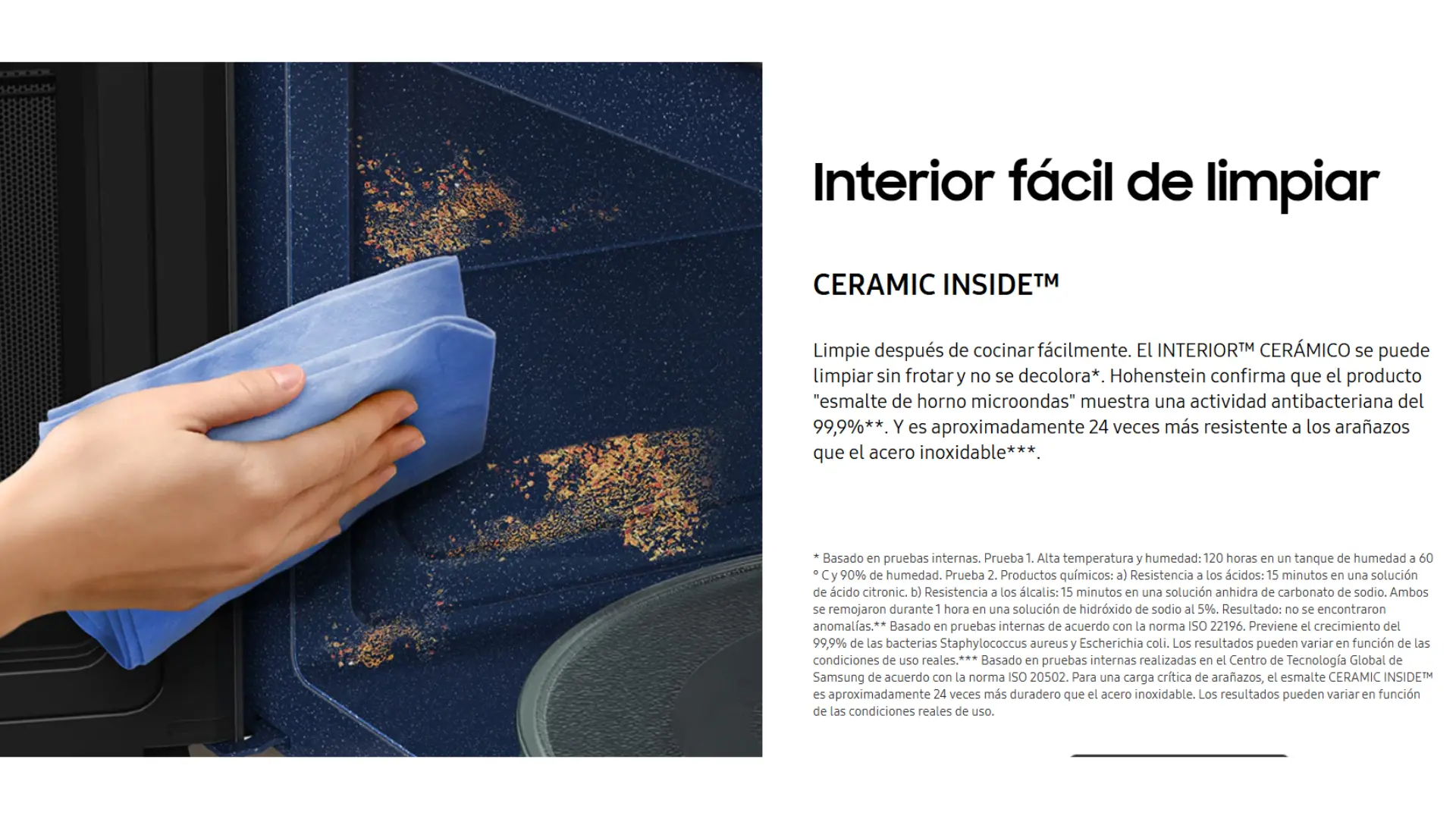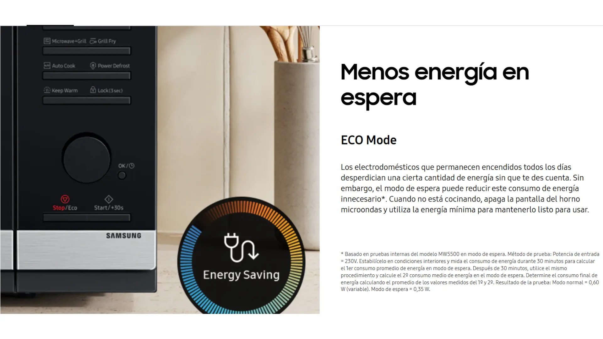 Disfruta una forma ordenada y cómoda de cocinar. El panel de control del horno de microondas Samsung, proporciona una experiencia de usuario sencilla, ya que sólo tiene unos pocos botones para controlar las funciones esenciales que se utilizan con más frecuencia. El mando giratorio también proporciona una mayor facilidad de uso y un control preciso. Así podrás seleccionar y ajustar fácilmente los parámetros.