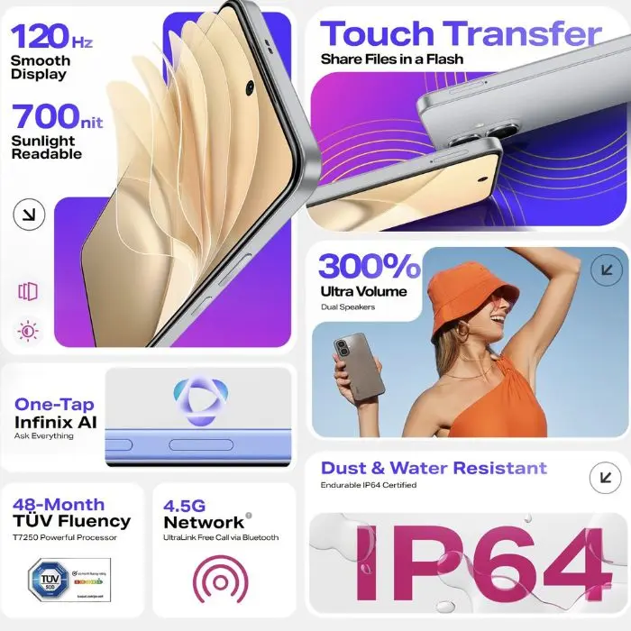 El Infinix Smart 10 combina rendimiento y estilo con su potente memoria, conectividad LTE y un diseño moderno. Ideal para quienes buscan fluidez, almacenamiento amplio y una experiencia Android eficiente a un precio accesible.