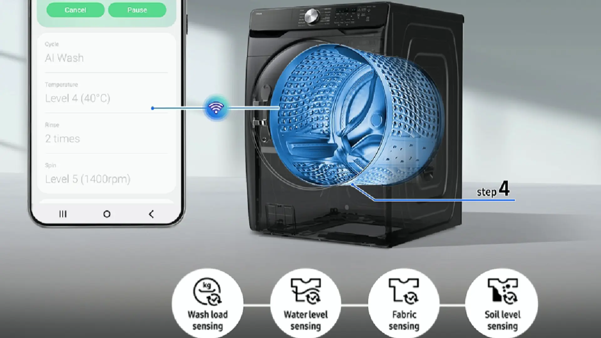 Lave la ropa a fondo* con menos desperdicio y esfuerzo. La detección avanzada de AI Wash detecta el peso y el tipo de tejido (algodón, toalla, delicado) de la carga y supervisa el nivel continuo de suciedad. A continuación, ajusta de forma inteligente la cantidad de agua y los tiempos de remojo, enjuague y centrifugado.