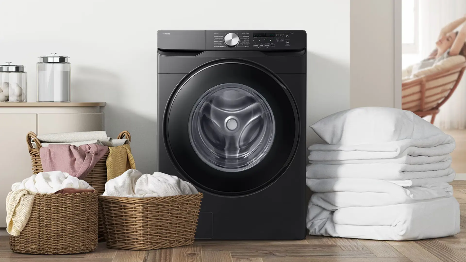 Lavadora Automática Samsung 26kg Carga Frontal Negra WF26DG8250AVAP